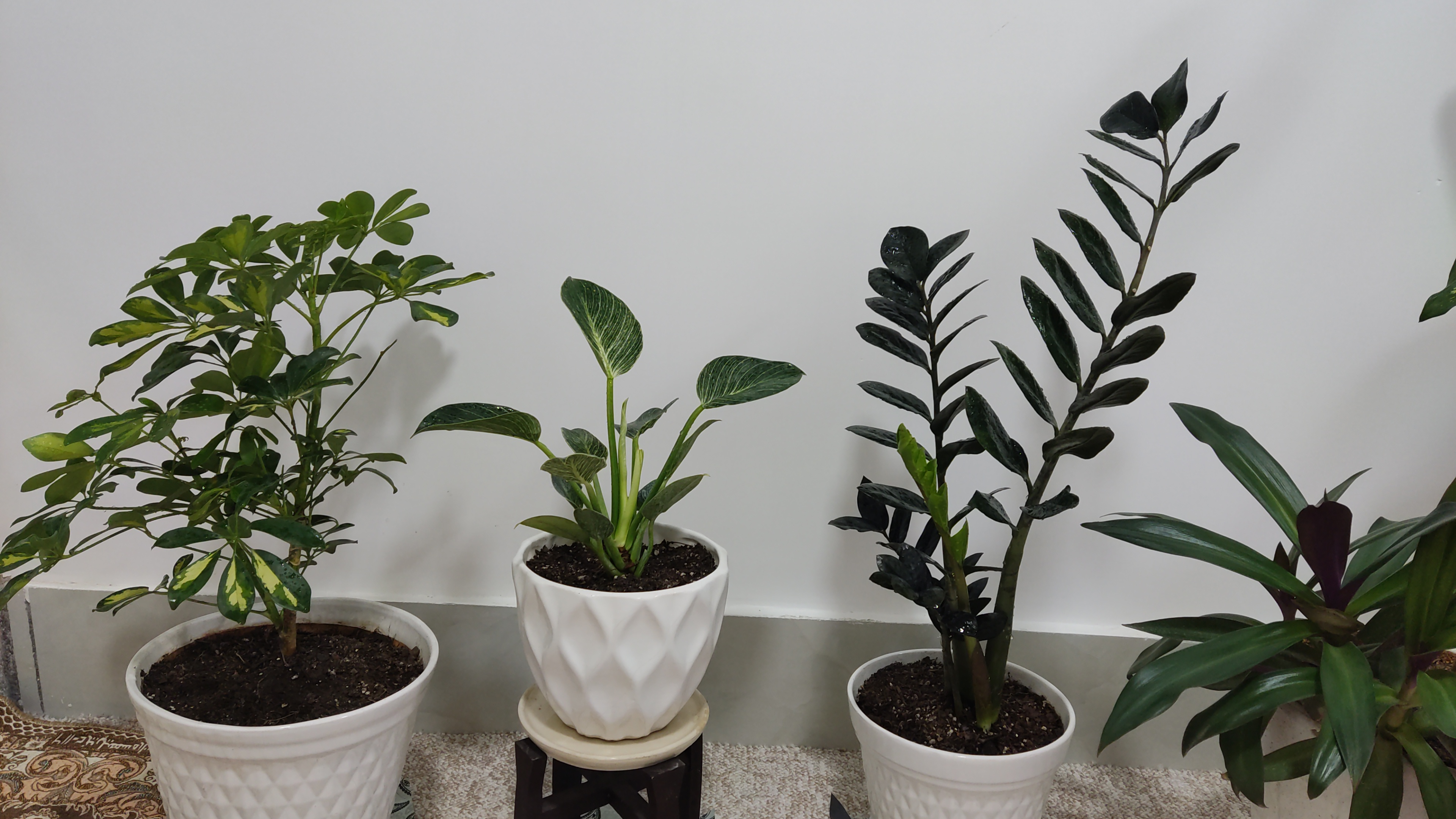 سلام وقت بخیر . تمام گیاهانی که تهیه کرده اید به نور کافی برای رشد مناسب نیاز دارند و کمبود نور باعث تغییر رنگ برگها و ضعیف و کوچک شدن برگها و یا کند و متوقف شدن رشد گیاه میشود . همچنین به محیطی با تهویه ی عالی نیاز دارند . مخصوصا گیاه شفلرا که حتما باید در محیطی بسیار پرنور و با هوای تازه قرار داشته باشد . ابیاری گیاهانتان باید زمانی انجام شود که خاک گلدان نسبتا خشک شده باشد یعنی این گیاهان تقریبا به ابیاری متوسط نیاز دارند. اجازه دهید حدودا یک سوم از خاک گلدان در عمق نسبتا خشک شود و بعد آبیاری را انجام دهید. در این میان زامیفولیا نسبتا به اب کمتری نسبت به سایرین نیاز دارد . میتوانید برای تست خشکی خاک از سيخ چوبی استفاده کنید . افراط و تفریط در آبیاری و عدم تهویه ی مناسب محیط میتواند باعث شیوع بیماری قارچی و پوسیدگی در این گیاهان شود .