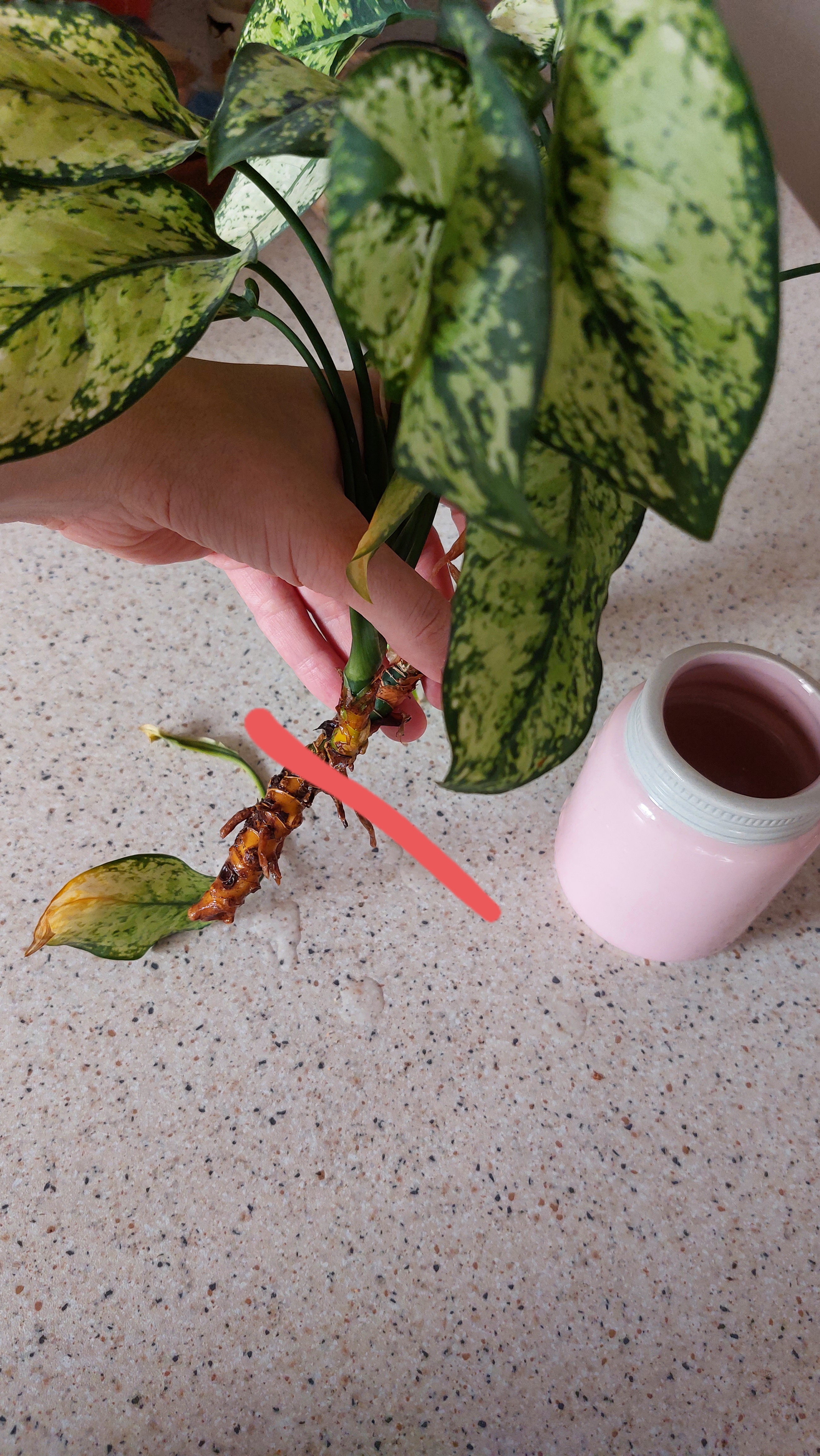 سلام وقت بخیر قسمتی از پایین گیاه را قطع کنید و داخل ظرف آب قرار بدید تا ریشه های جدید بزند .زمانی که نوک ریشه زد گیاه را به خاک منتقل کنید .