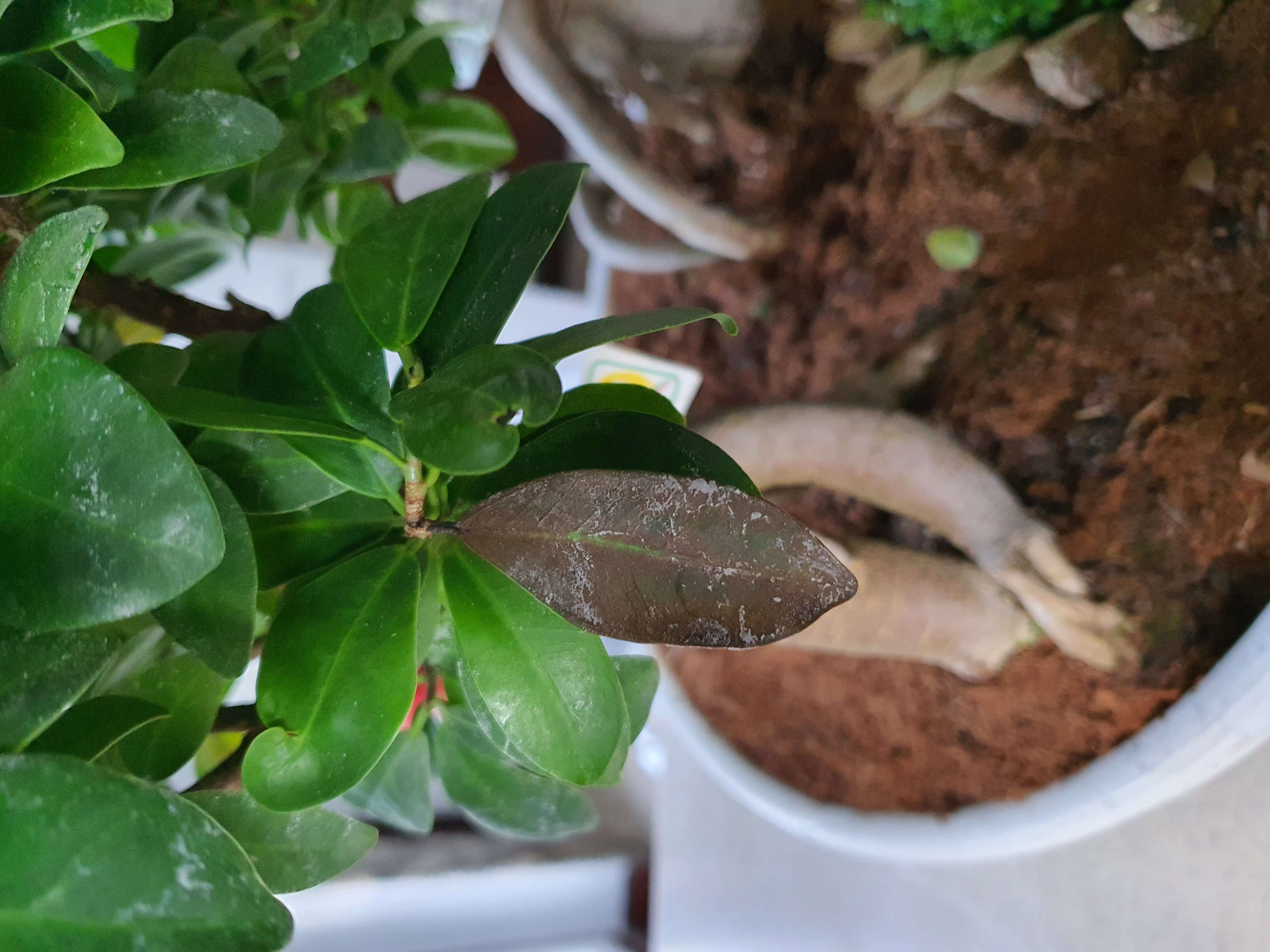 سلام وقت به خیر. من ۴ روزه که یک گلدان نسبتا بزرگ بنسای هدیه گرفتم، برگهاش داره زرد میشه و میریزه. ضمنا نوک بعضی برگهای جوان این شکلیه، چرا؟