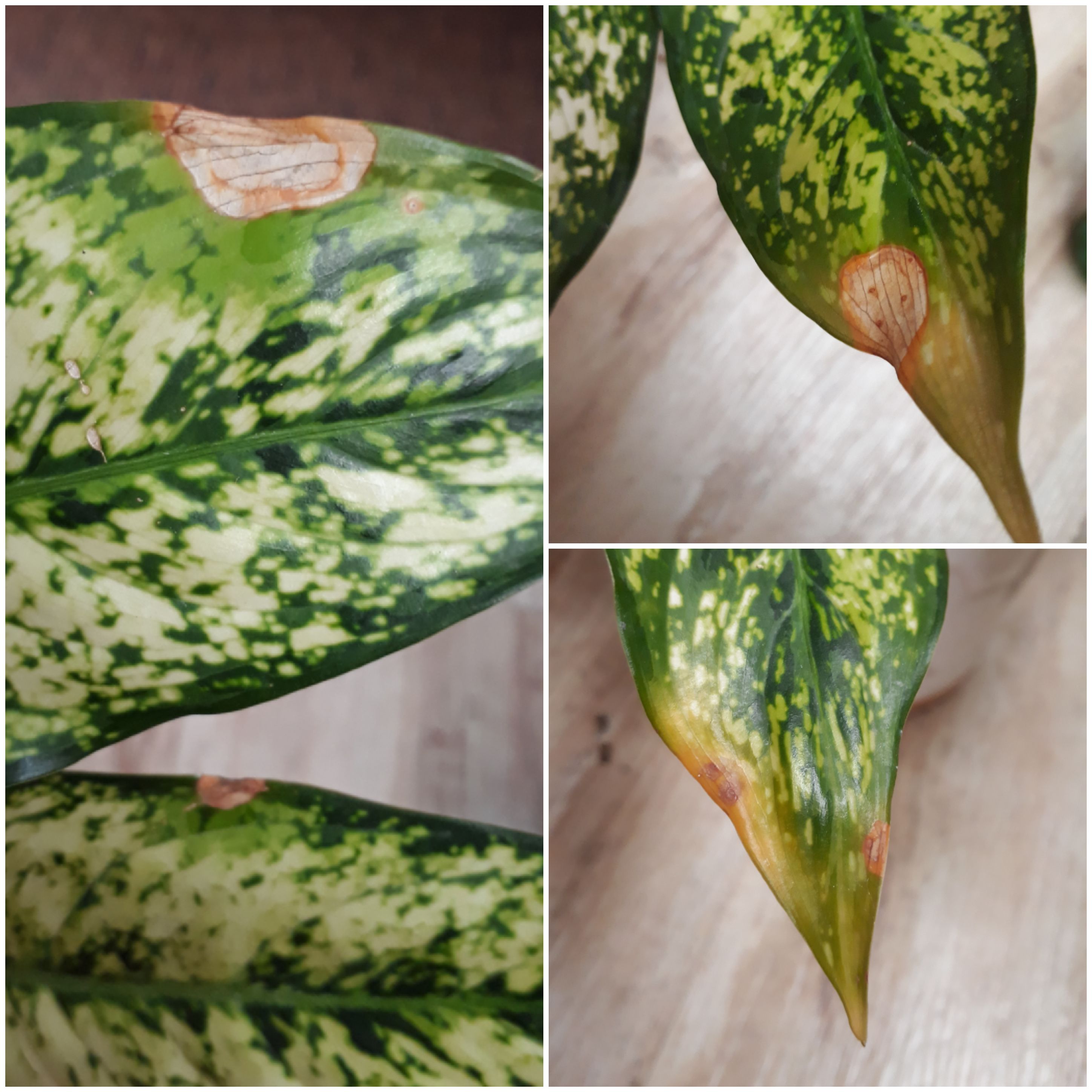 سلام وقت بخیر. گیاه را از خاک خارج کنید. و وضعیت ریشه و زهکش ته گلدان را چک کنید . بعد از کاشت مجدد ، گیاه را در محیطی با نور ملایم قرار دهید و آبیاری را زمانی انجام دهید که خاک گلدان نسبتا خشک شده باشد میتوانید برای تست خشکی خاک از سيخ چوبی استفاده کنید. البته ابتدا بعد از کاشت مجدد گیاه را سیراب کنید و بعد از آن طبق مواردی که بیان شد آبیاری را انجام دهید. اگر ساقه در حال نرم شدن یا تغییر رنگ دادن باشد باید انرا جدا کرده و از قسمت سالم گیاه قلمه گرفته و در خاک یا آب دوباره ریشه دار کنید. برگهای آسیب دیده را جدا کنید چون دیگر ترمیم نمیشوند. محل نگهداری گیاه باید دمای یکنواخت و تهویه ی خوبی داشته باشد. آبیاری زیاد ، رطوبت بالا و تهویه ی نامناسب محیط باعث بروز بیماری قارچی و پوسیدگی و شیوع آفاتی مانند شپشک آردآلود میشود .