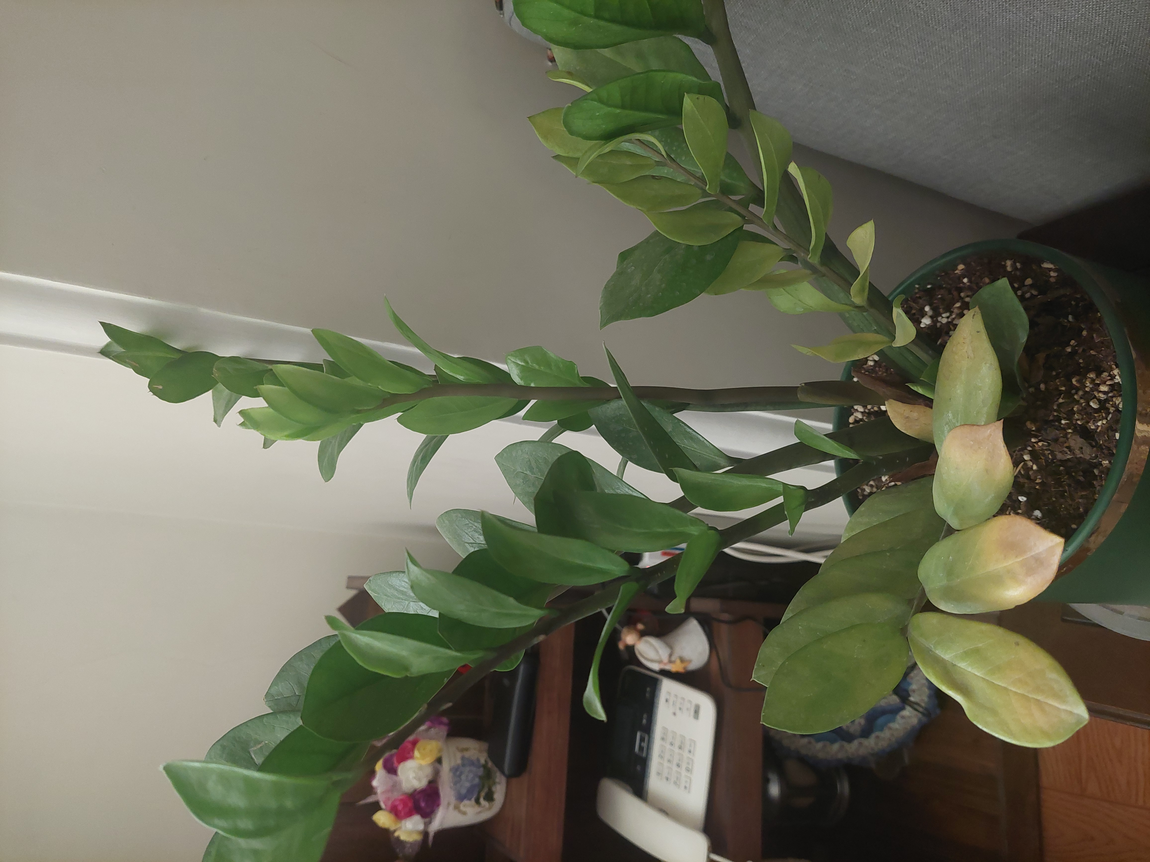 ساقه ی زرد شده را جدا کنید چون ترمیم نمیشود. مدتی گیاه را به این شیوه آبیاری نمایید قبل از آبیاری خاک گلدان را از نظر خشکی تست کنید. میتوانید برای تست خشکی خاک از سيخ چوبی استفاده کنید و زمانی که حدودا یک سوم از خاک گلدان نسبتا خشک بود آبیاری را انجام دهید و در این فصل به اندازهای آب در گلدان بریزید که چند قطره از ته گلدان خارج شود و بعد زیرگلدانی را خالی کنید. اگر زیرگلدانی بدون فاصله به ته گلدان چسبیده، بهتر از با ریختن پوکه یا سنگریزه در زیرگلدانی و قراردادن گلدان بر روی ان ، بین زیرگلدانی و انتهای گلدان فاصله ایجاد کنید تا تهویه در ته گلدان به خوبی انجام شود. و اگر مدت زیادی است که خاک و گلدان تعویض نشده بهتر است گلدان را تعویض و در حین تعویض خاک وضعیت ریشه را نیز از نظر پوسیدگی چک کنید . بعد از کنترل آبیاری اگر روند زرد شدن برگها در ساقه های دیگر نیز ادامه پیدا کرد حتما گیاه را از خاک خارج کنید و ریشه را مورد بررسی قرار دهید زیرا احتمال پوسیدگی ریشه زیاد است .