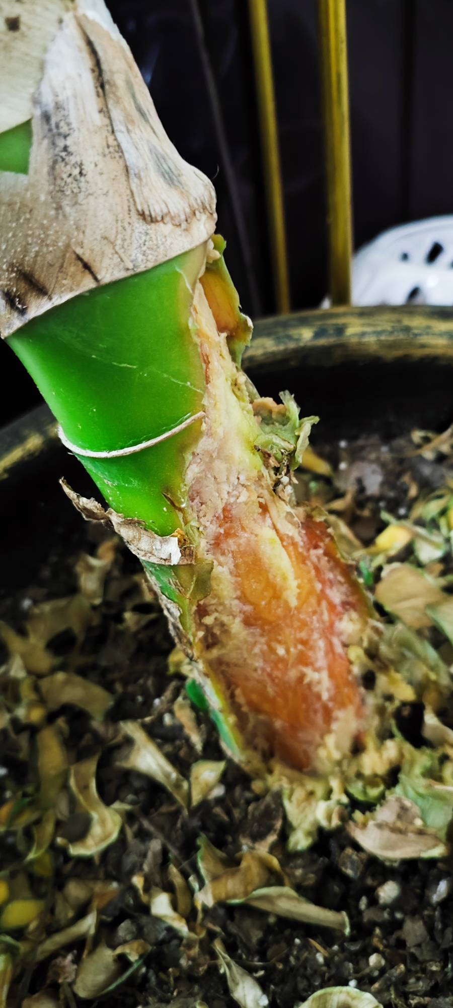 سلام. امروز متوجه شدیم قسمتی از ساقه گیاه دیفن باخیای بزرگی که داریم پوسیده. این پوسیدگی به نحوی بود که با فشار دست، پوسته ساقه له شد و به حالت پودر جدا میشد. انگار گندیده شده باشه. عکسها را براتون می فرستم آیا راه حلی براش هست یا میشه به جوری قلمه بگیرم ازش که از بین نره. یک حشره کش هم بعدش البته اسپری کردم اما نمیدونم آیا تاثیری داره یا نه.