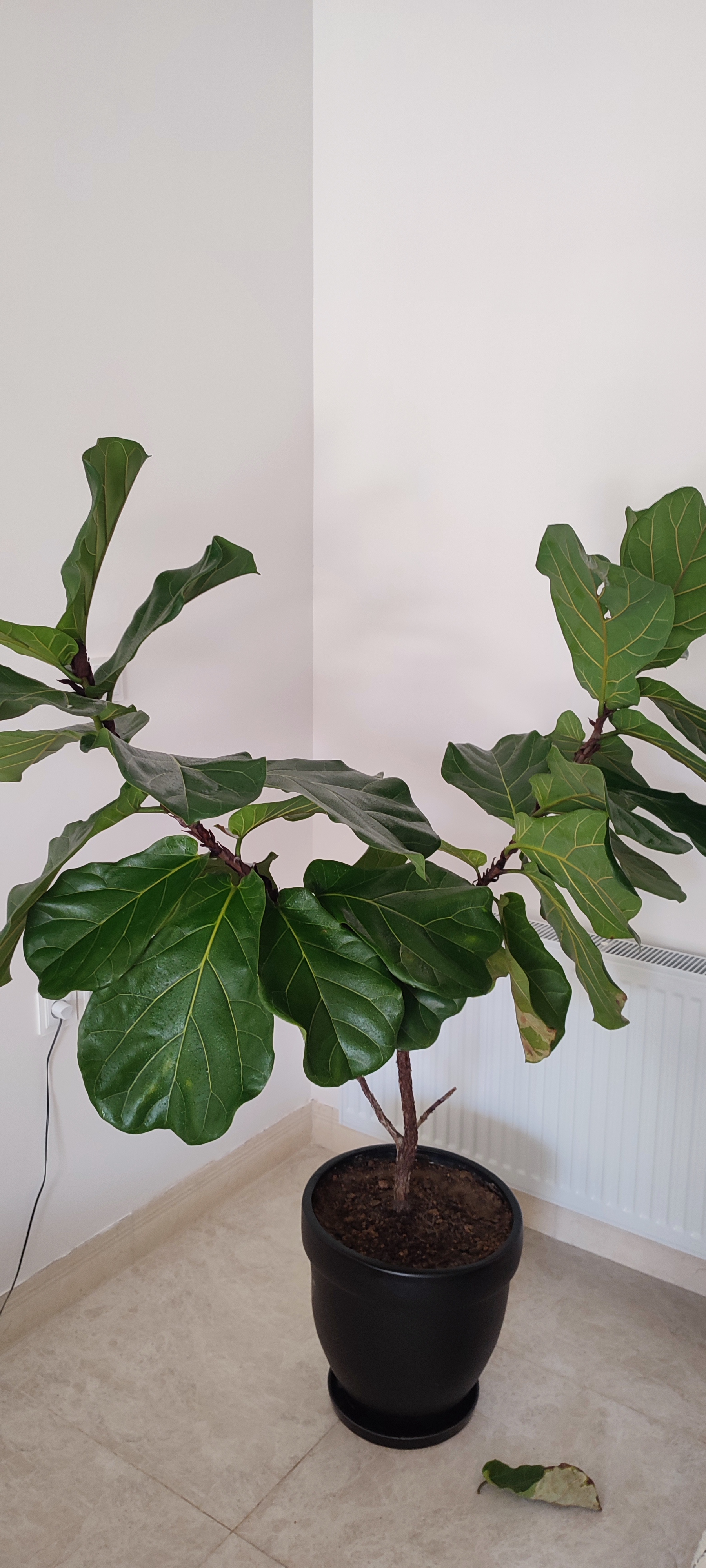 محلی که گیاهی با این سایز را در ان قرار داده اید اصلا مناسب این گیاه نیست . لیراتا گیاهیست که به محیطی با نور زیاد و تهویه ی عالی و فضای باز نیاز دارد . این گیاه اصلا نباید در کنار موانعی مانند دیوار یا مبلمان قرار داشته باشد . این گیاه باید در کنار پنجره های بسیار بزرگ ، که بدون پرده و ترجیحا در جهت جنوب است ، قرار داده شود . برای تهویه هم حتما باید به گیاه هوای تازه برسد . اگر گیاه در محیط کاملا بسته ( مخصوصا محیط کوچک با ارتفاع کم سقف) قرار بگیرد به مرور دچار بیماری و آفت شده و برگهایش را از دست داده و از بین خواهد رفت . گلدان را به محیط مناسبتر منتقل کنید . آبیاری را زمانی انجام دهید که خاک گلدان نسبتا خشک شده باشد و بعد گیاه را در این فصل کاملا سیراب کنید. گاهی اوقات در زمان آبیاری برگها را نیز مورد شست و شو قرار دهید تا هم برگها تمیز شوند و هم رطوبت گیاه تامین شود . برگهای آسیب دیده را جدا کنید چون دیگر ترمیم نمیشوند. میتوانید برای تست خشکی خاک از سيخ چوبی استفاده کنید و زمانی که حدودا یک سوم از خاک گلدان نسبتا خشک شده بود آبیاری را انجام دهید. اگر خاک گلدان خیلی سبک است یا حاوی کوکوپیت و پرلیت است انرا اصلاح کنید و از خاکی با بافت متوسط استفاده کنید.
