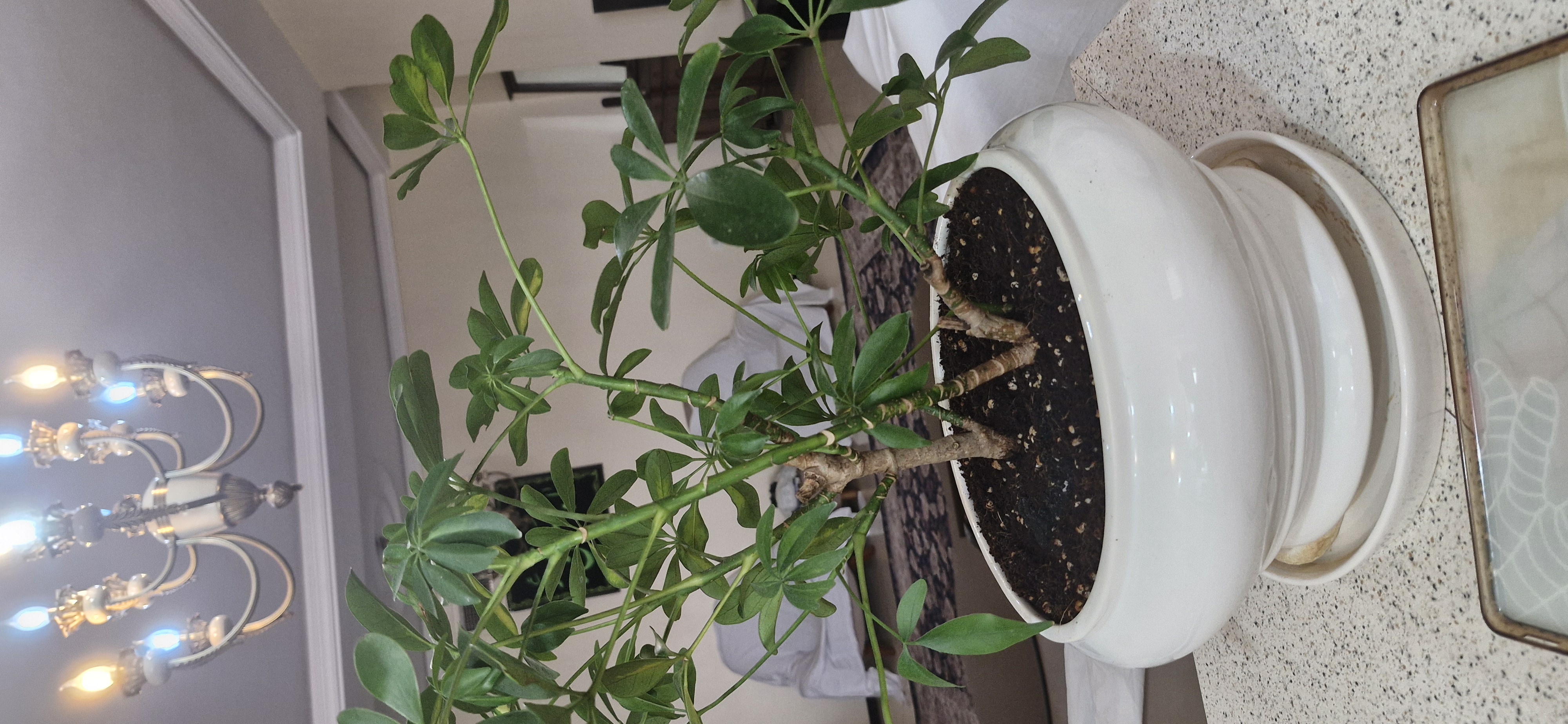 خیر ، فاصله ی گیاه تا پنجره بسیار زیاد است این گیاه به نوری چندین برابر بیشتر و به هوای تازه نیاز دارد . محیط نگهداری فعلی مناسب نیست و برای همین گیاه دچار آسیب شده است .