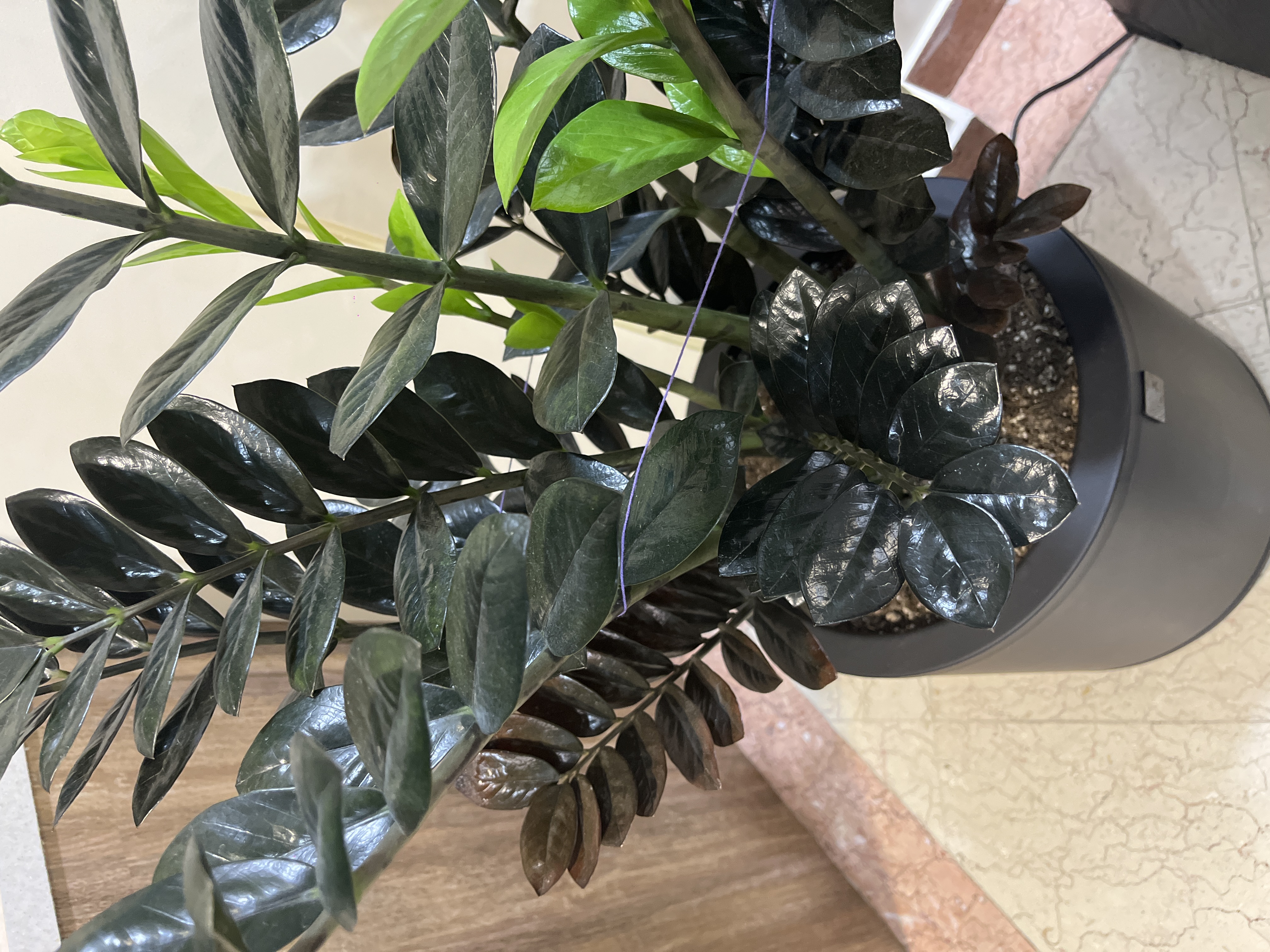 با توجه به جنس و عمق گلدان بهتر است قبل از ابیاری خاک را از نظر خشکی تست کنید. میتوانید برای تست خشکی خاک از سيخ چوبی استفاده کنید و زمانی که حدودا یک سوم از خاک گلدان نسبتا خشک شده بود آبیاری را انجام دهید. افراط و تفریط در آبیاری و تهویه ی نامناسب میتواند باعث بروز بیماریهای قارچی و پوسیدگی گیاه شود . چون ساقه های گیاه از پایین در حال تغییر رنگ دادن است بهتر است برای اطمینان از سلامت ریشه گیاه را از خاک خارج کنید و وضعیت ریشه را چک کنید اگر ریشه دچار پوسیدگی و یا آسیب بود قسمتهای آسیب دیده و ساقه های تغییر رنگ داده را جدا کنید و بعد گیاه را مجددا در خاک ( ترجیحا خاک جدید) بکارید . حدود یک پنجم از ته گلدان را لایه ی زهکش بریزید . میتوانید برای لایه ی زهکش از پوکه درشت و تکه های زغال استفاده کنید. گلدان را در محیطی با نور و تهویه ی خوب ، دور از آشپزخانه و سرویس بهداشتی و یا سیستمهای صوتی و تصویری قرار دهید. گیاه روبروی کولر قرار نداشته باشد.