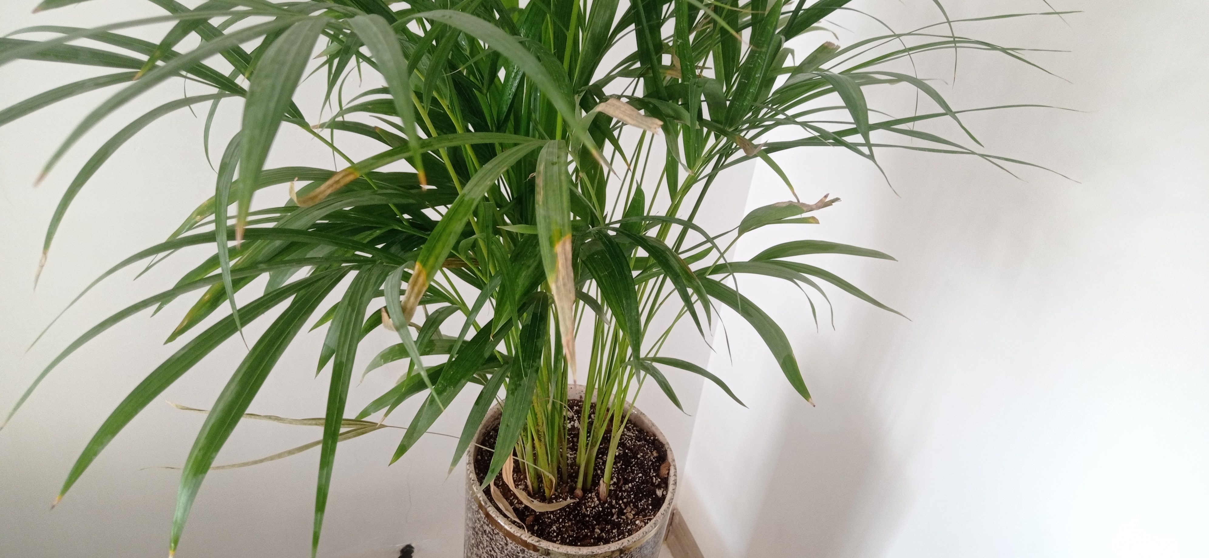 سلام وقت بخیر . قرار دادن گلدان و گیاهی با این سایز در کنج دیوار ، میتواند گیاه را دچار آسیب کند . لطفا بفرمایید نحوه ی آبیاری به چه صورت است؟ و محیط از نظر نور و تهویه چه وضعیتی دارد؟