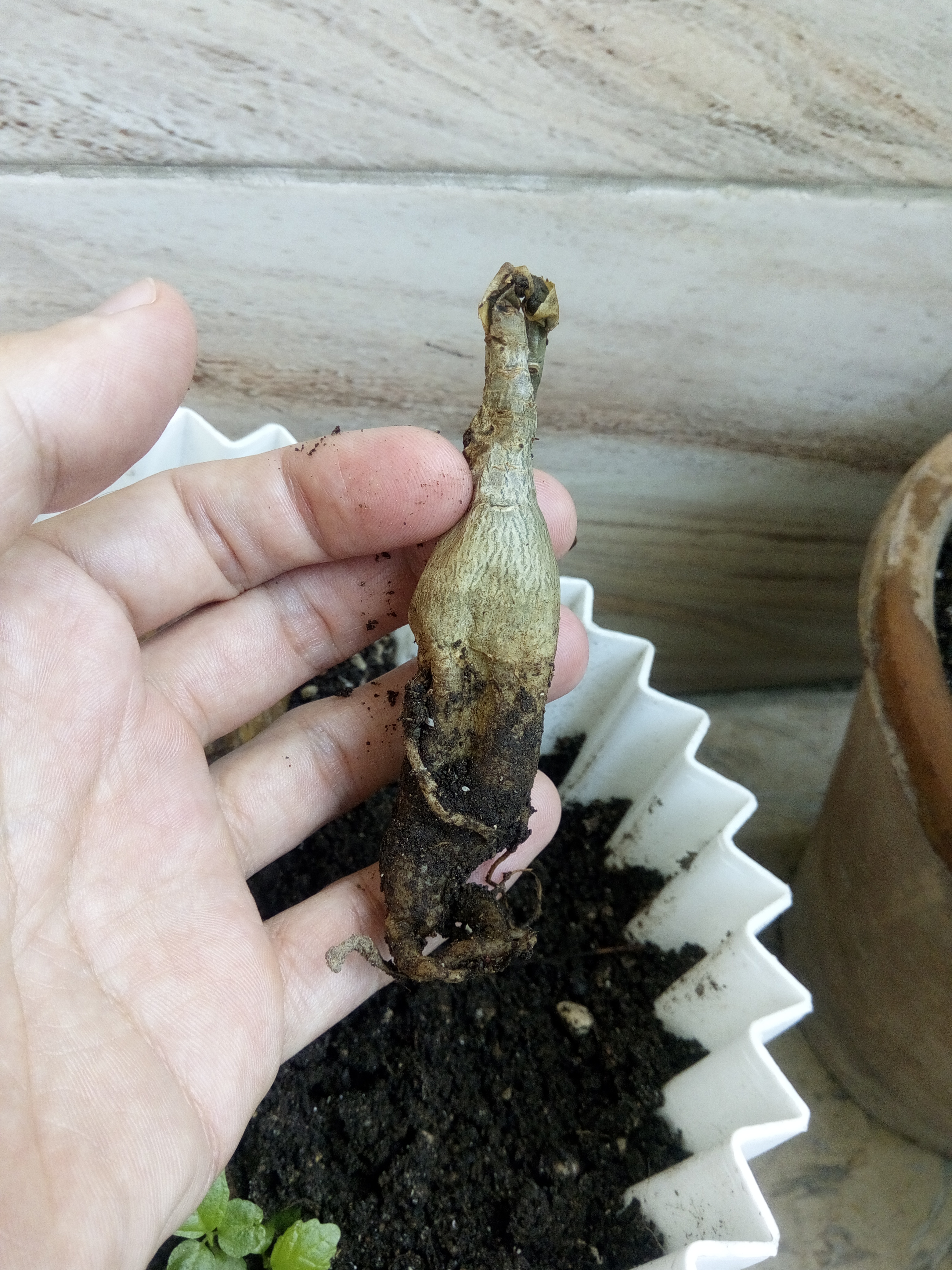 سلام وقت بخیر من گل آدنیوم دارم متاسفانه اینو یکی از اعضای خونه خیلی آب داده و این پوک شده ، ریشه هاش کمی سالم هستن، تنه اش شل شده و از طرفی برگاش ریختن و لزج شده کلا بالاتنه اش شکست! فقط انتهاش ونزدیک ریشه اش یکمی سفت هستش نمیدونم شاید از سردی بیش از حد و متورم شدن خاک جذب آب زیادی هستش! فقط بگم آستارا هستم و هوا سرد شده و رو بعضی گلها شب ها مشما میکشم که یخ نزنن زیادی هم سرد نیست حدود ۱۰ ۱۴ درجه شده فکر کنم سوالم اینه چطوری میشه این بن سای آدنیوم رو نجات بدم ایا راهی هست یا ؟؟ از ترس گذاشتم توی خاک...یه دو بار از خاک بیرون اوردم ببینم چه طوری شده مرده یا نه!؟ خیلی نگرانشم کمک کنین ممنون عکسم میدم قسمتی که انگشت شستم هست یکمی جون دار هستش بقیه اش بگی نگی لزج و شل شدن! ممنون