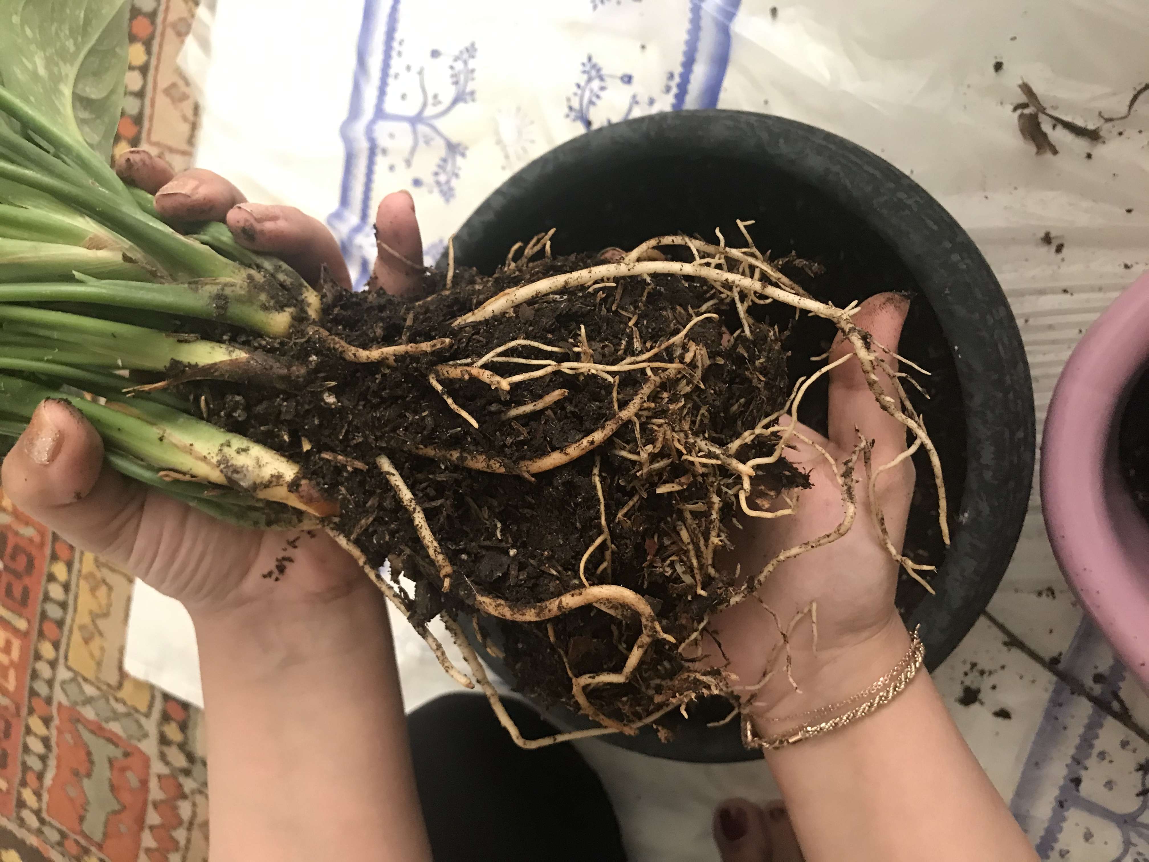 سلام وقتتون بخیر .گیاه رو کامل از خاک دربیارید .خاک اطراف ریشه رو کامل بشورید و از ریشه های تمیز برام عکس بفرستید .