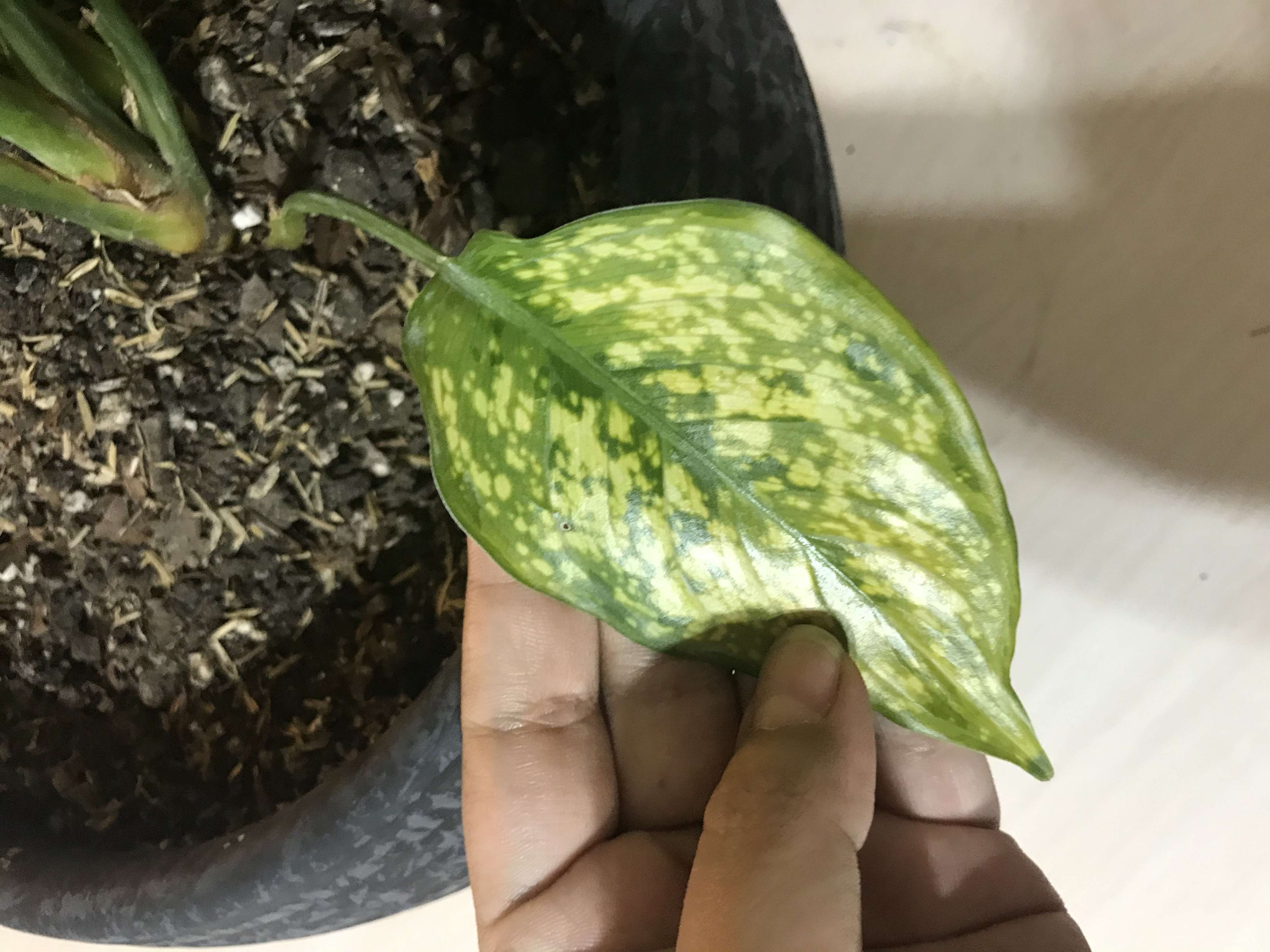 سلام،وقتتون بخير،من يك آگلونما برفى ٥ماهه خريدم،همون اول گلدونش رو عوض كردم،بعد از ده روز برگهاش وسطشون لكه مثل خشكى ايجاد شد،پرسيدم،گفتن قارچى شده،يك دوره كامل قرچ كشيش كردم،جزيره داره،غبار پاشى هر ٢-٣ روز ميكنم،آبيارى هم وقتى خاكش خشك ميشه،بعد از ٢هفته باز از همون لكه ها ايجاد شد،بازم قارچ كشى كردم،بعد از ٢هفته دوتا از برگهاى قديمى پايينش زرد شد،كندم،دوتا از برگهاى وسطش هم از نوك كم كم زرد شد و قهوهايى شد،اما در حده همون سره برگ اينجورى شد،كل برگ نشد،گفتم شايد خاكش ضعيف شده،كود ٣بيست بهش دادم،بعد از ده روز مجدد يك برگ ديگش زرد شد از نوك ،بازم ٣بيست دادم،در كل دوبار ٣بيست دادم،ب فاصله دوهفته،بعد از دوهفته باز گفتن شايد قارچى شده،الان دوبار ب فاصله يك هفته قارچ كش براش استفاده كردم،ديروز هم باز يك برگ قديمش ك چند روز بود زرد شده بود،كندم،امروز باز ديدم دوتا برگ ديگشم داره از نوك زرد ميشه،چيكارش كنم؟ميترسم خراب شه در ضمن بهم گفتن ٦-٧سانت خاكش رو با چنگال شخم بزن شايد كرم يا هزارپا داشته باشه،ك اينكارم كردم،نداشت ببخشيد طولانى گفتم،خواستم كامل بگم تا بيشتر بتونيد كمكم كنين