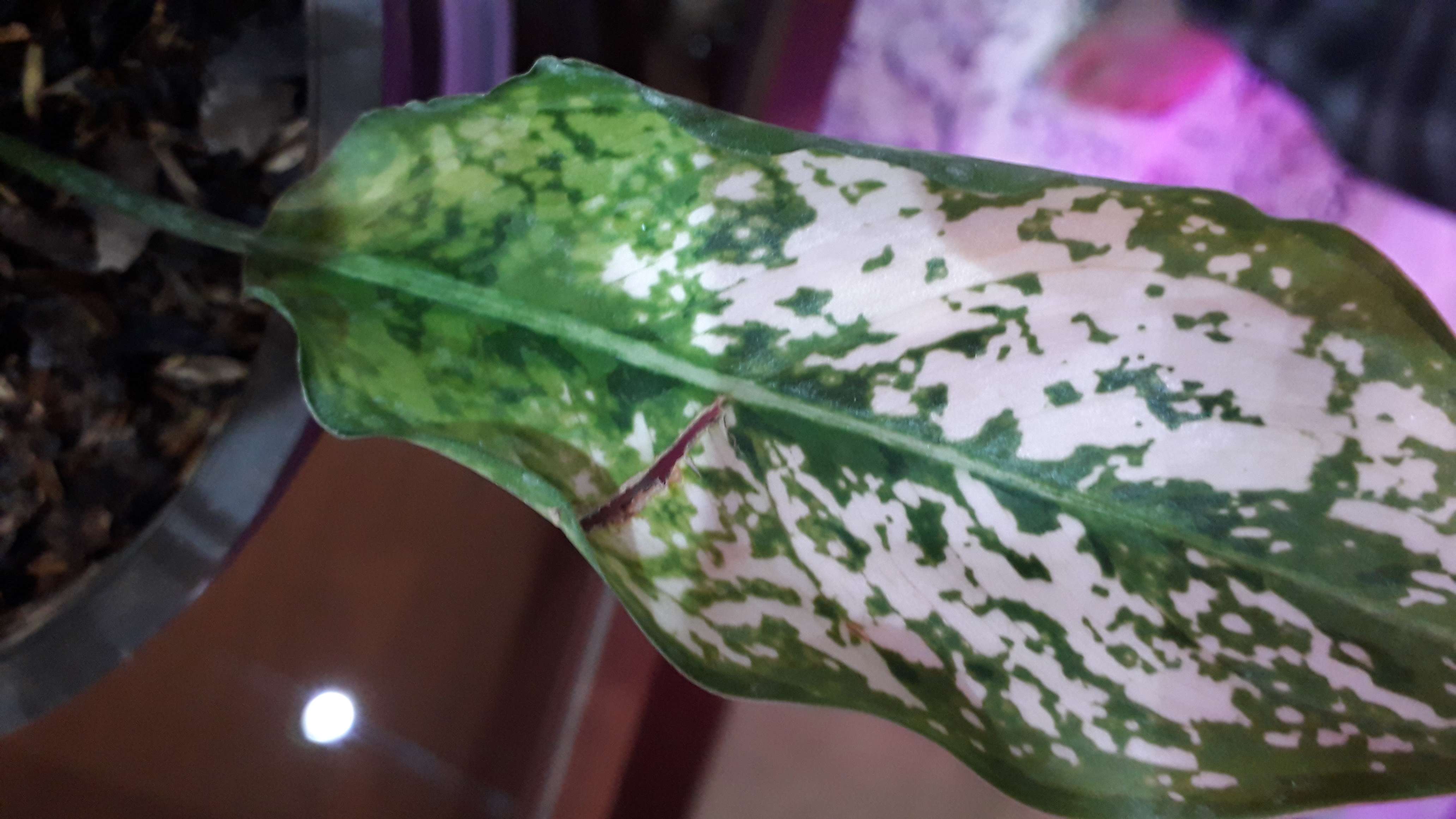 با تشکر. فاصله لامپ از گیاه حدود ۸۰ سانتیمتر هست. تقریبا 100fc نور دریافت میکنه. البته دیروز در پشت ابتدای ساقه یکی از برگها لکه قهوه ای رنگ دیدم و با توجه به پرسش و پاسخ ها با آب و صابون برگ ها رو اسپری کردم.