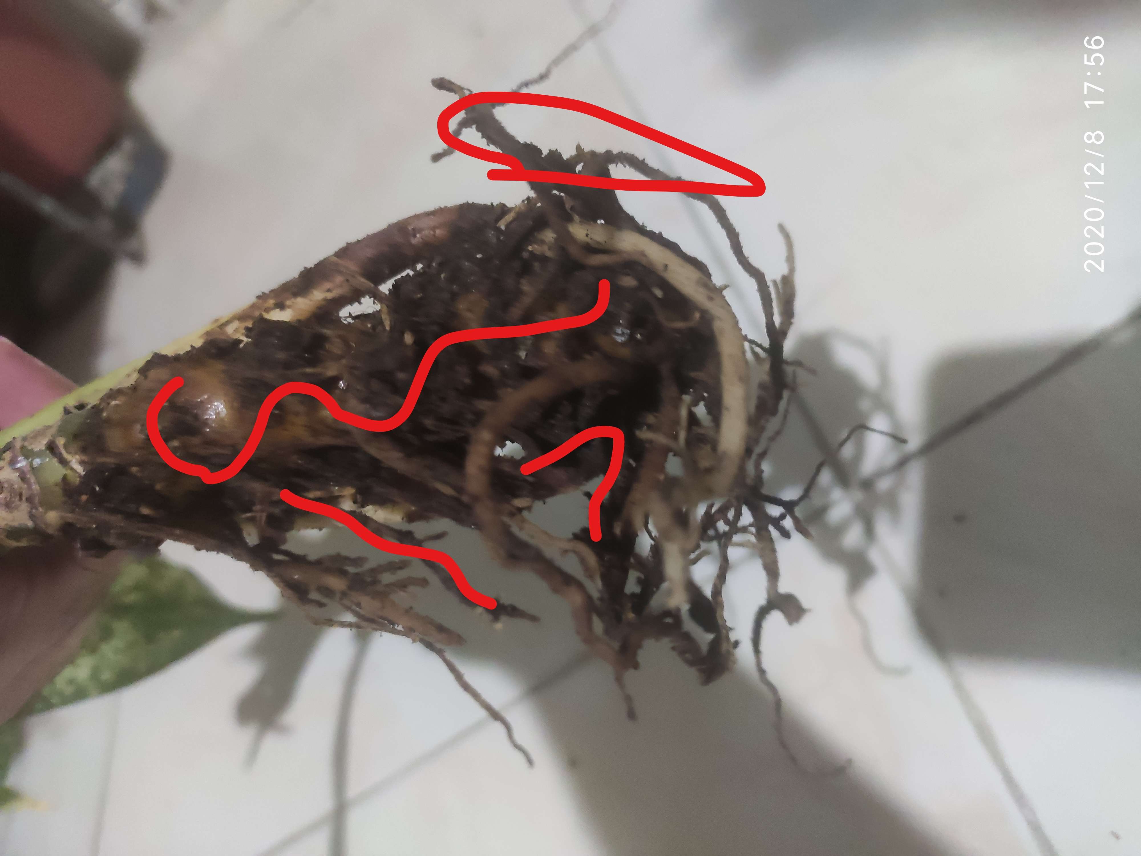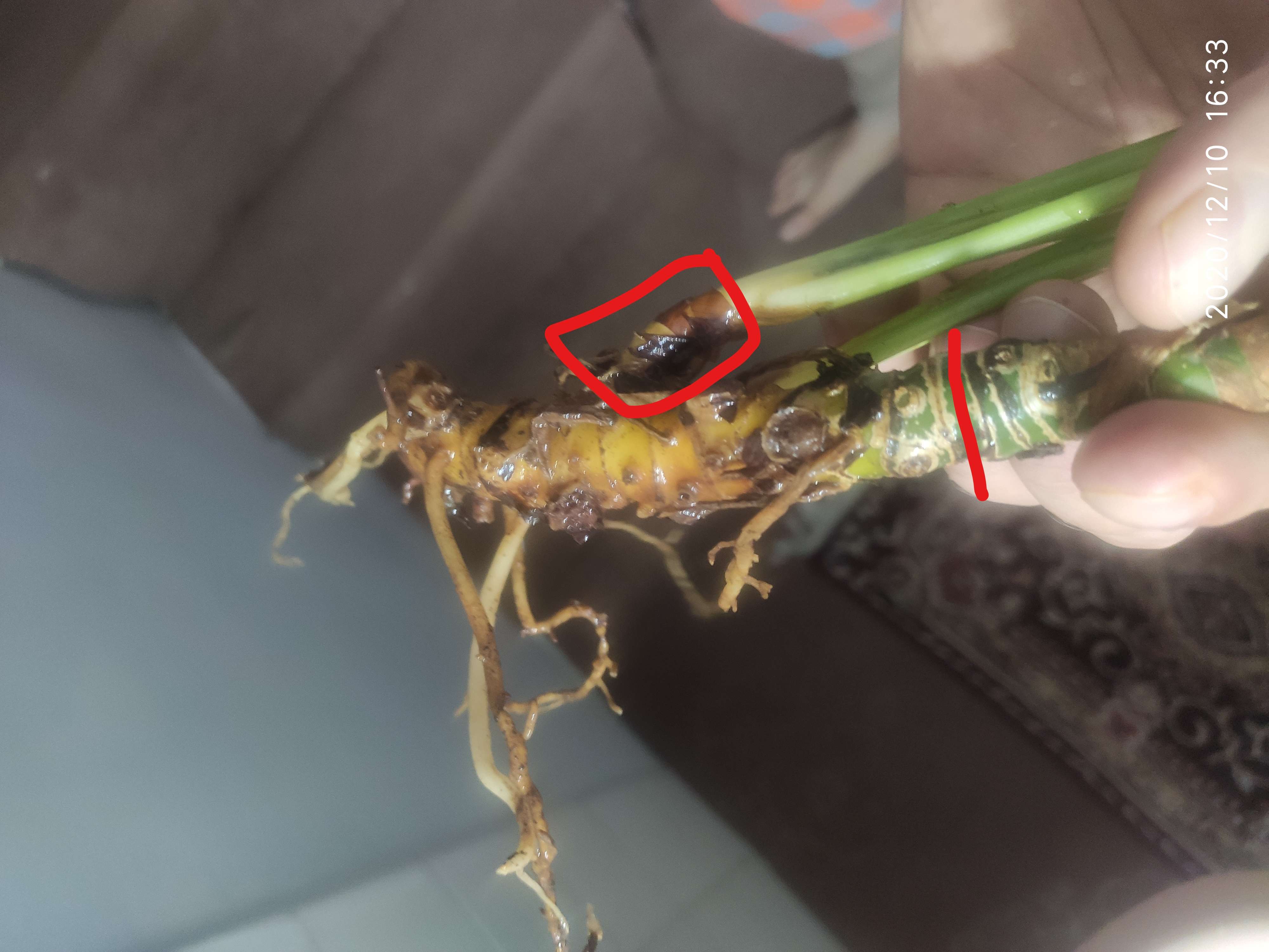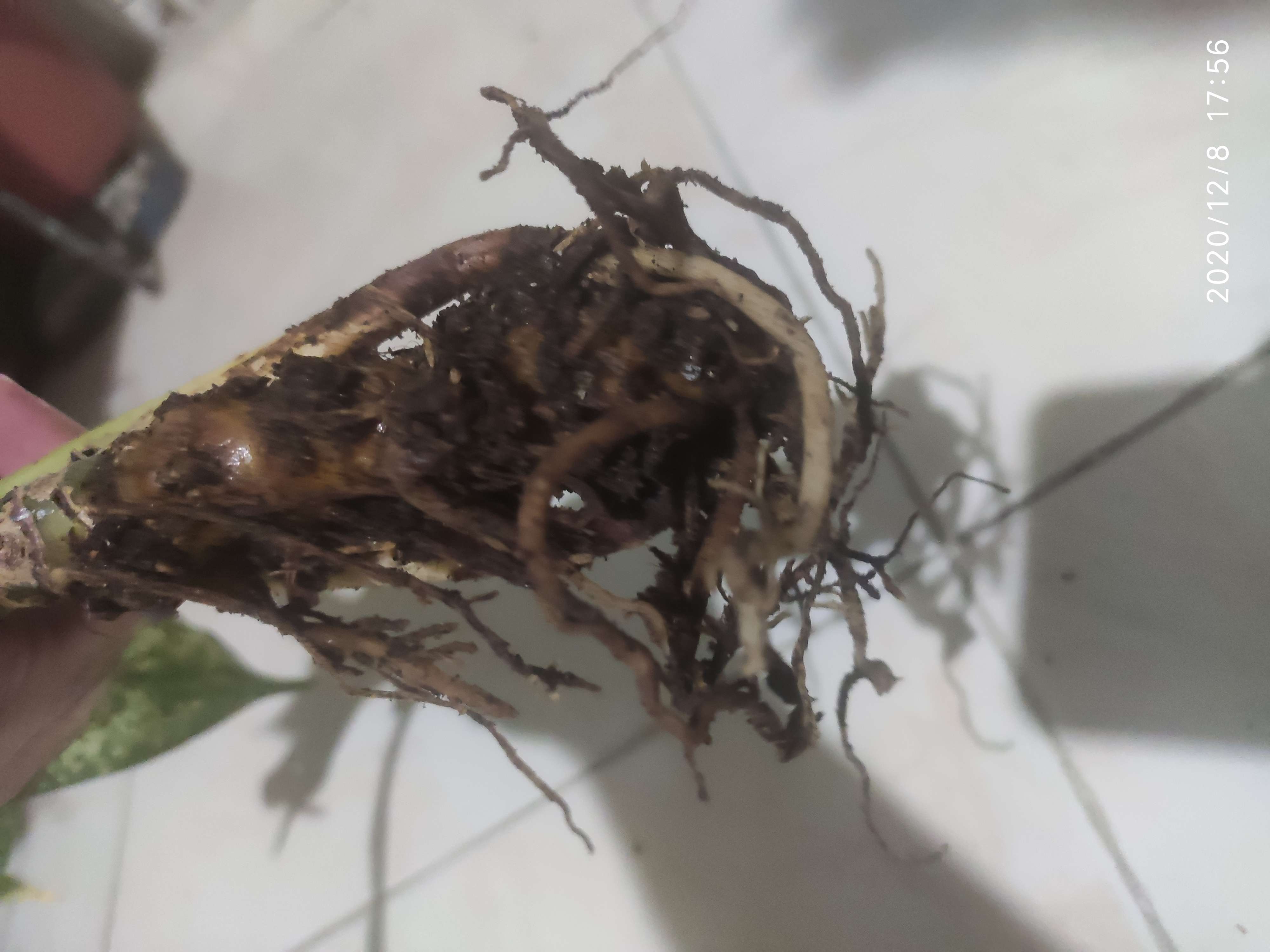 اگر ریشه ها سیاه و نرم و با دست به راحتی جدا بشن یعنی پوسیدگی دارن .لطفا انتهای گیاه و ریشه ها را با اب کاملا بشورید و عکس ریشه ی تمیز شده را ارسال نمایید متشکرم
