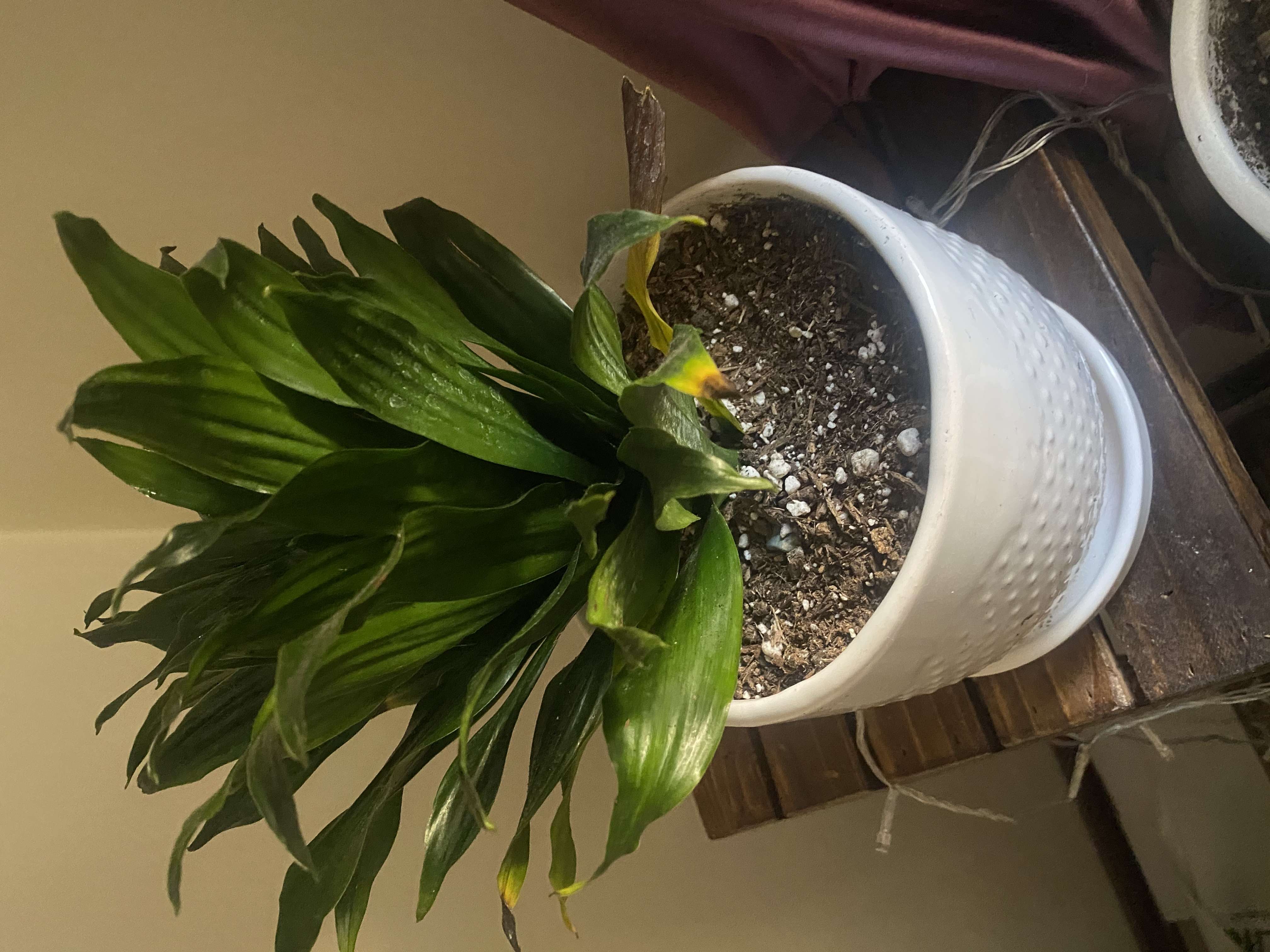 سلام وقتتون بخیر گیاه شما دراسنا کامپکت نام دارد .علت زرد شدن برگها و همچنین خشک و قهوه ای شدن برگها میتواند افراط و تفریط در آبیاری باشد .بهتره به گیاه زمانی آب بدید که خاک گلدان خشک شده باشد برای اینکه متوجه شوید خاک گلدان در عمق خشک است یا هنوز رطوبت دارد میتوانید یک سیخ چوبی در خاک فرو کرده و چند ثانیه نگه دارید بعد سیخ را بیرون بیاورید اگر ذرات خاک به سیخ چسبیده باشد نشان دهنده ی اینست که خاک هنوز رطوبت دارد و نیازی به آبیاری نیست .در غیر اینصورت و در صورتی که سیخ چوبی خشک و بدون ذرات خاک باشد ، میتوانید گلدان را آبیاری کنید .اگر سوال دیگه ای در این مورد دارید در خدمتتونم .