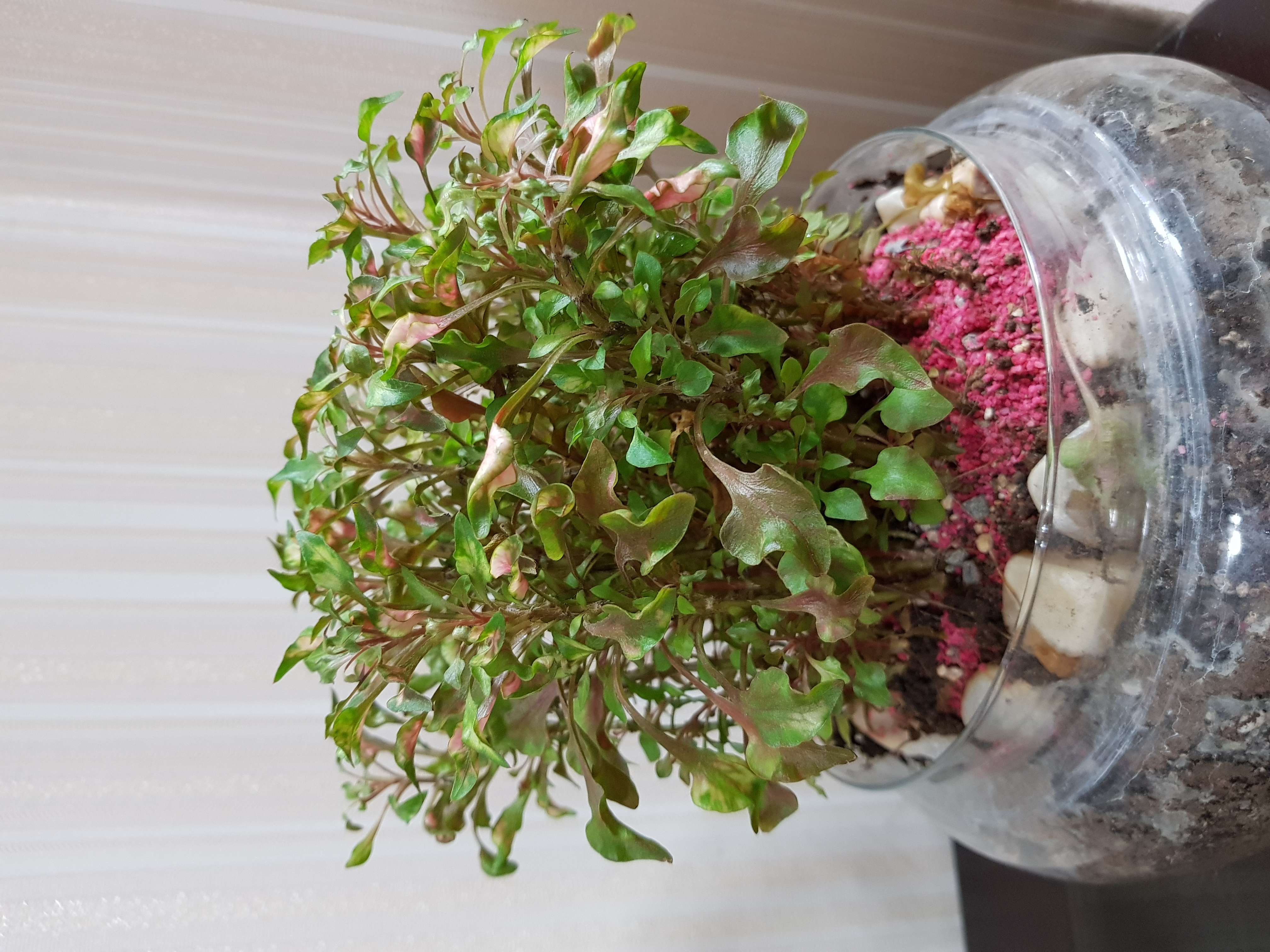 سلام وقتتون بخیر .بله گیاه شما لودویجیا ریپنس هستش و از گیاهان آکواریومی و آبزی است البته این گیاه بعنوان یک گیاه گلدانی هم میتواند به زندگی ادامه دهد . دمای ملابم , نور متوسط , و رطوبت کافی از نیاز های این گیاه است .اگر گیاه در تراریوم قرار دارد حتما باید گاهی اوقات برای تعویض هوا و متناسب کردن رطوبت , درب تراریوم را بردارید . نور زیاد , نوسان دما یا سرما و گرمای زیاد باعث تغییر رنگ برگها و افراط در آبیاری و رطوبت بیش از اندازه ی خاک , سبب پوسیدگی گیاه میشود .از طریق قلمه ی ساقه به راحتی تکثیر میشود .اگر سوال دیگه ای در این مورد دارید در خدمتتونم .