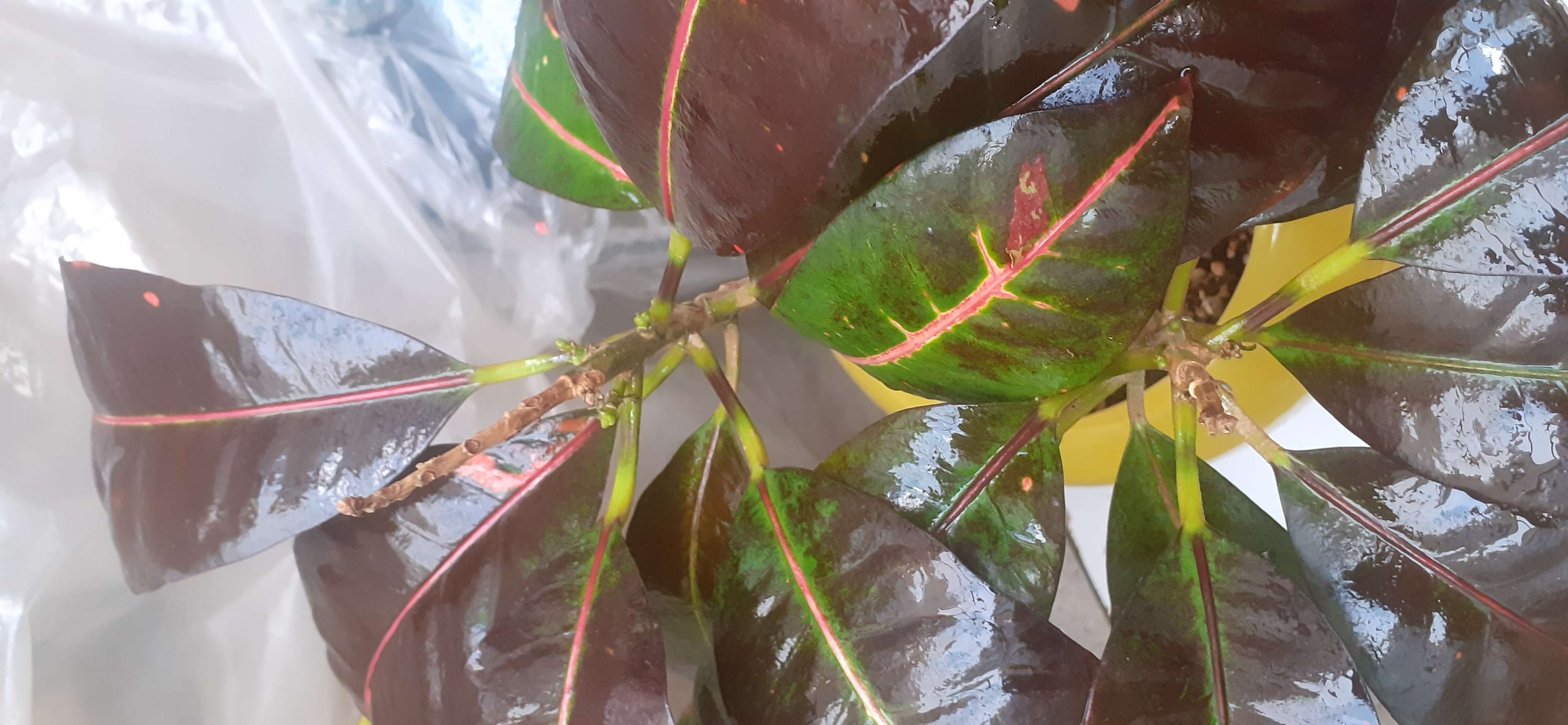 وقتتون بخیر گیاه شما کروتون هست کروتون به شرایط دمایی بسیار حساسه و از اونجایی که برگ های رنگی داره به نور نیاز داره تا شاداب باشه. سرمای هوا، جابه جایی گیاه و تنش دمایی، کحیط های بسته بدون تهویه و خشکی محیط از عوامل اصلی ریزش برگ ها و قهوه ای شدن برگ هااست. روش های تامین رطوبت درست کردن جزیره و غبار پاشی هست که به درستی انجام میدید فقط از اب جوشیده به دمای محیط رسید یا اب تصفیه استفاده کنید.