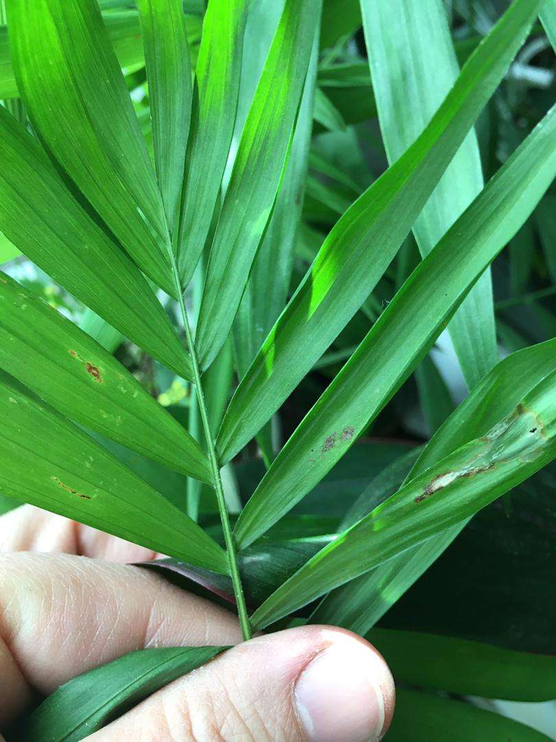 سلام وقتتون بخیر لکه های سیاه و قهوه ای برگ ها در اثر حضور آفات به وجود آمده. گلدان را از سایر گیاهان جدا کنید و برگ های آسیب دیده را با قیچی تمیز و ضدعفونی شده جدا کنید. برای اطمینان از نابودی کامل آفت ازسموم آفت کش استفاده کنید سم پاشی را با دستکش در فضای باز انجام دهید. اگر سوالی داشتید در خدمتتون هستم