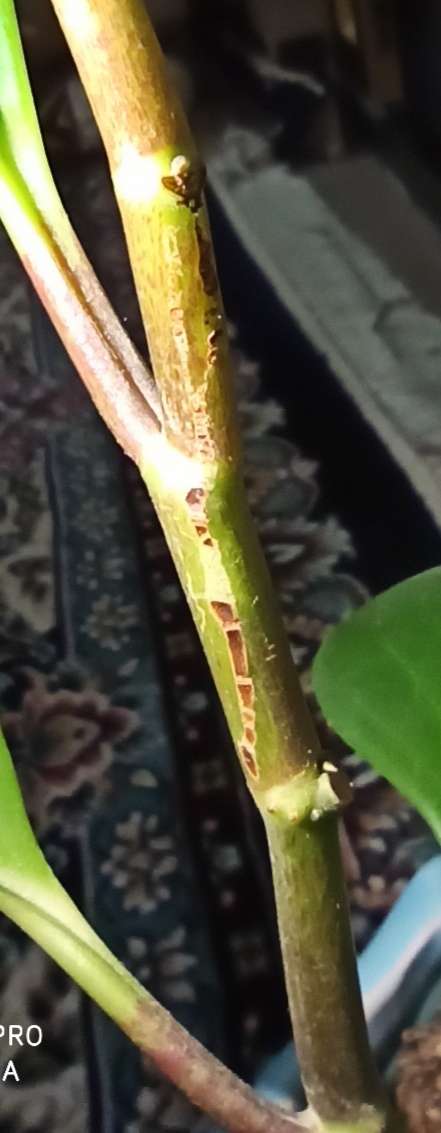 سلام گل قاشقی من حاشیه برگهای جدیدش داشت قهوه ای میشد درحالیکه ابیاریش مناسب بود بخاطر همین براش جزیره ساختم و مکانش رو عوض کردم اما چند وقت بعد برگهای جدیدش اون قسمتی که قهوه ای شده بود سیاه میشد و همچنین ساقش هم سیاه میشد و همه برگهای جدیدش ریختن دمای مکانش گرم بود و من دوباره عوض کردم مکانشو که ساقش دیدم اینطوری شده(باتوجه به عکس)و یه لکه های ریز قهوه ای هم روی همه ساقه هاشه علاوه بر این زدگی ها