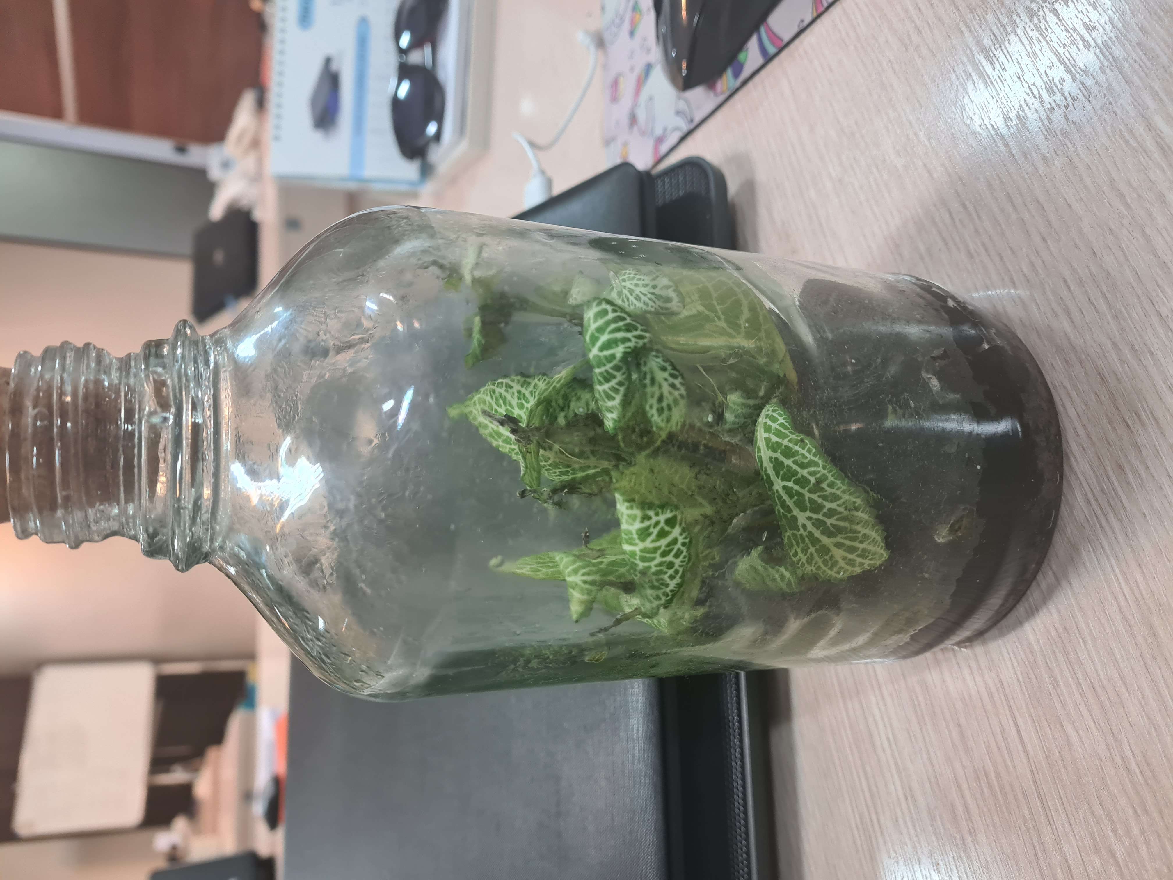 چون دهانه ی تراریوم تون باریکه بهتره دربش همیشه باز باشه و هر زمان متوجه شدید رطوبت داخل بطری کم شده کمی اب داخل اش اسپری کنید . نیازی به کوددهی نیست . برای هرس کردن اش هم چون دهانه ی بطری باریکه ، کمی اینکار ممکنه براتون سخت باشه اما با حوصله میتونید اینکار رو انجام بدید .میتونید از قیچی های مخصوص تراریوم که تو بازار هستش استفاده کنید .یا از فروشگاههای لوازم ارایشی بهداشتی ، قیچی نازک تهیه کنید و برای اینکار استفاده کنید .برای هرس ، ساقه را از بالای محل رویش برگ قطع کنید .