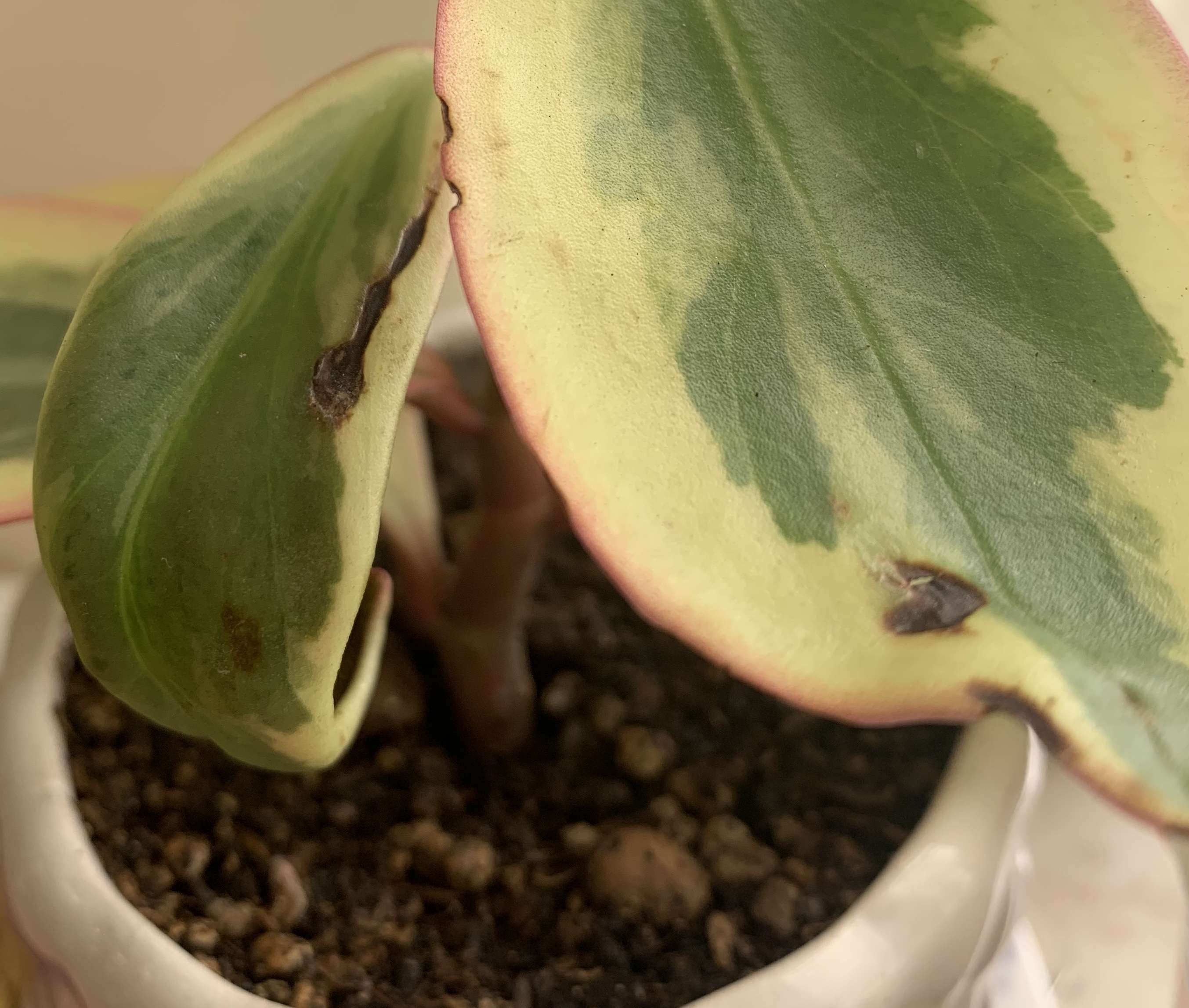 وقتتون بخیر هر سه گیاه شما دچار قارچ برگی شدن و برای درمان برگ های الوده را جدا کنید و گلدون هایی که الوده هستن را از بقیه گلدون ها جدا کنید. از قارچکش کاربندازیم یا مانکوزب برای اسپری پاشی سطح برگ استفاده کنید و سم پاشی را یک هفته بعد دوباره تکرار کنید. بعد از درمان برای پیشگیری هر 45 روز یکبار برگ ها را با قارچکش اسپری کنید. قاشقی شما به نظر زهکش بسته ای داره یا ابیاری مناسب نبوده دقت کنید زمانی که اب میدید اب اضافی از زیر گلدون خارج بشه