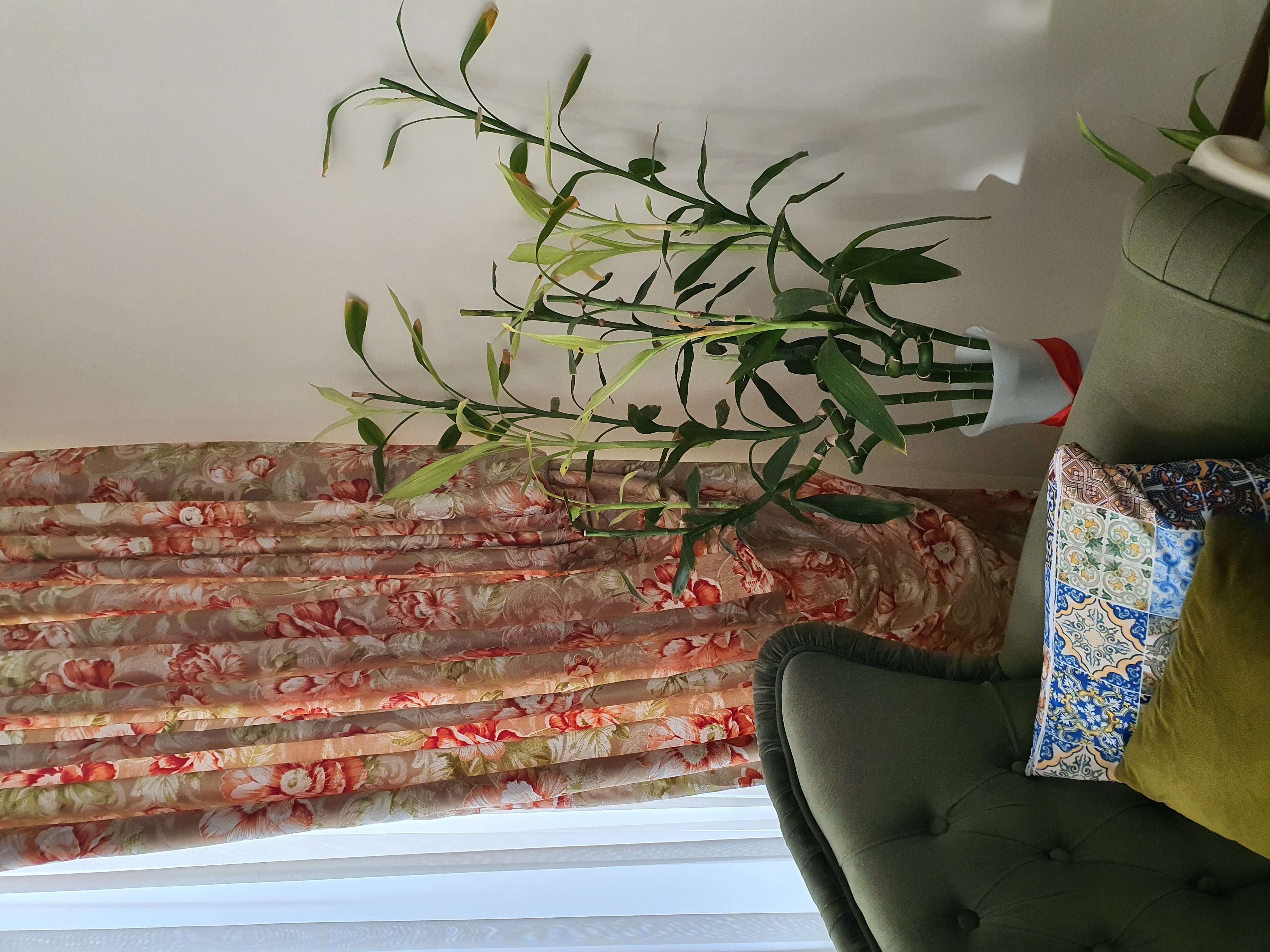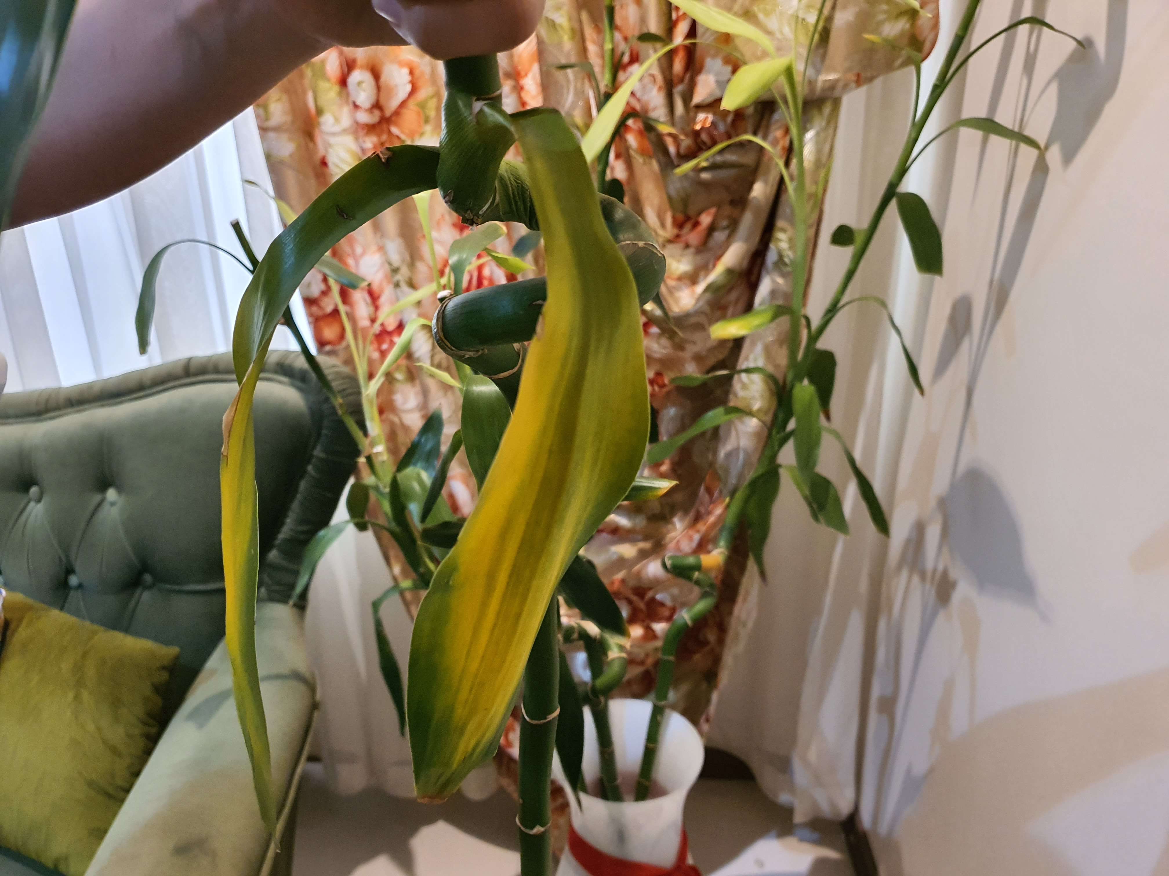 ببینید، این بامبوها را وقتی قدشون نصف الان بود یکجا خریدیم و پنج سال هست که جاشون ثابت و کنج سالن پذیرایی بودن، متاسفانه الان چهار پنج ماه هست به تدریج این وضع براش پیش آمده... معمولا درب بالکن باز هست... تهویه مناسبی داره...