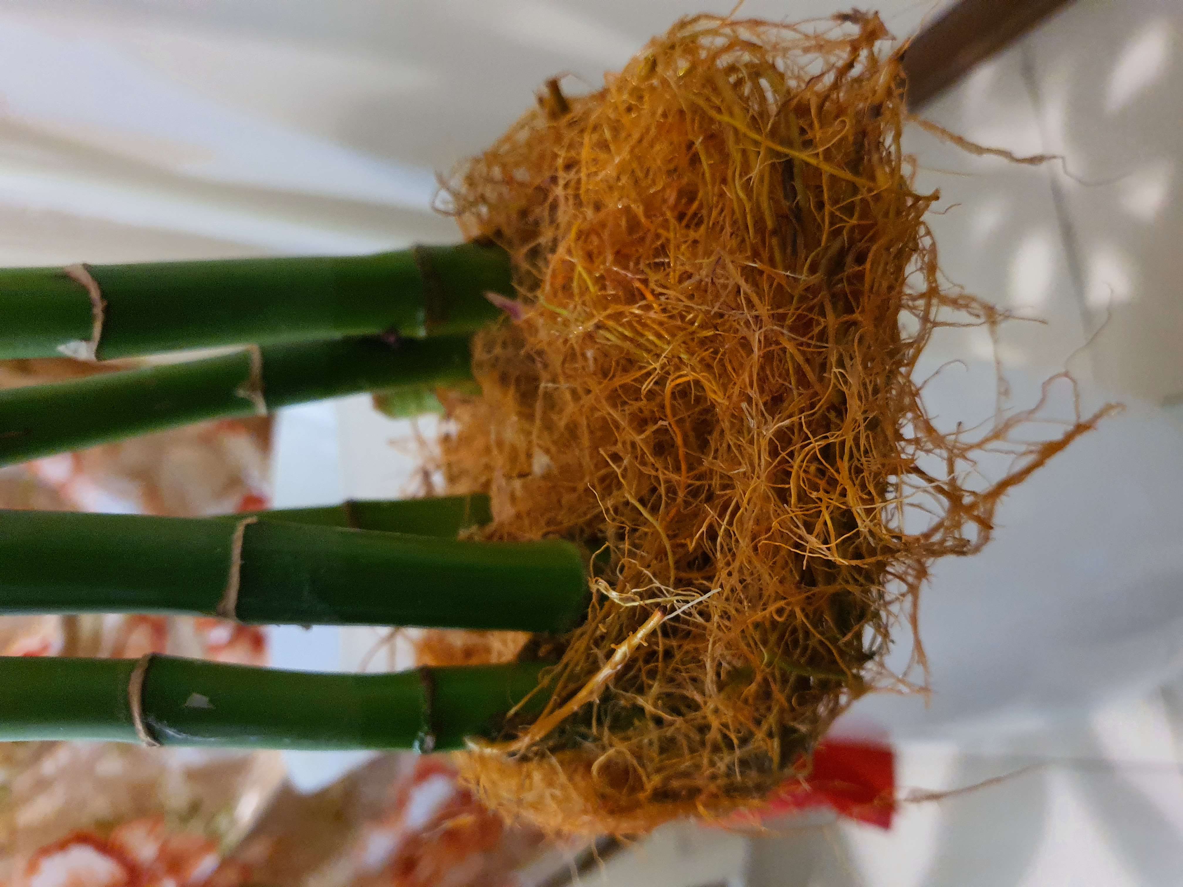 عکسی از ریشه براتون فرستادم، این چند تا بامبو ریشه هاشون در هم تنیده شده، برای هرس کردن چکار باید کرد؟ ریشه ها را ببرم و کوتاه کنم؟ یک سوال دیگه داشتم، از پای این بامبو ها دو تا شاخه ظریف رشد کردند و من بریدمشون و در یک ظرف جدا گانه قرار دادم، فقط در محل بریدگی قهوه ای رنگ شده ساقه و کمی حالت لزج مانند داره، این طبیعی هست و نشانه درآمدن ریشه هست؟ البته خود گیاه سرحال هست...