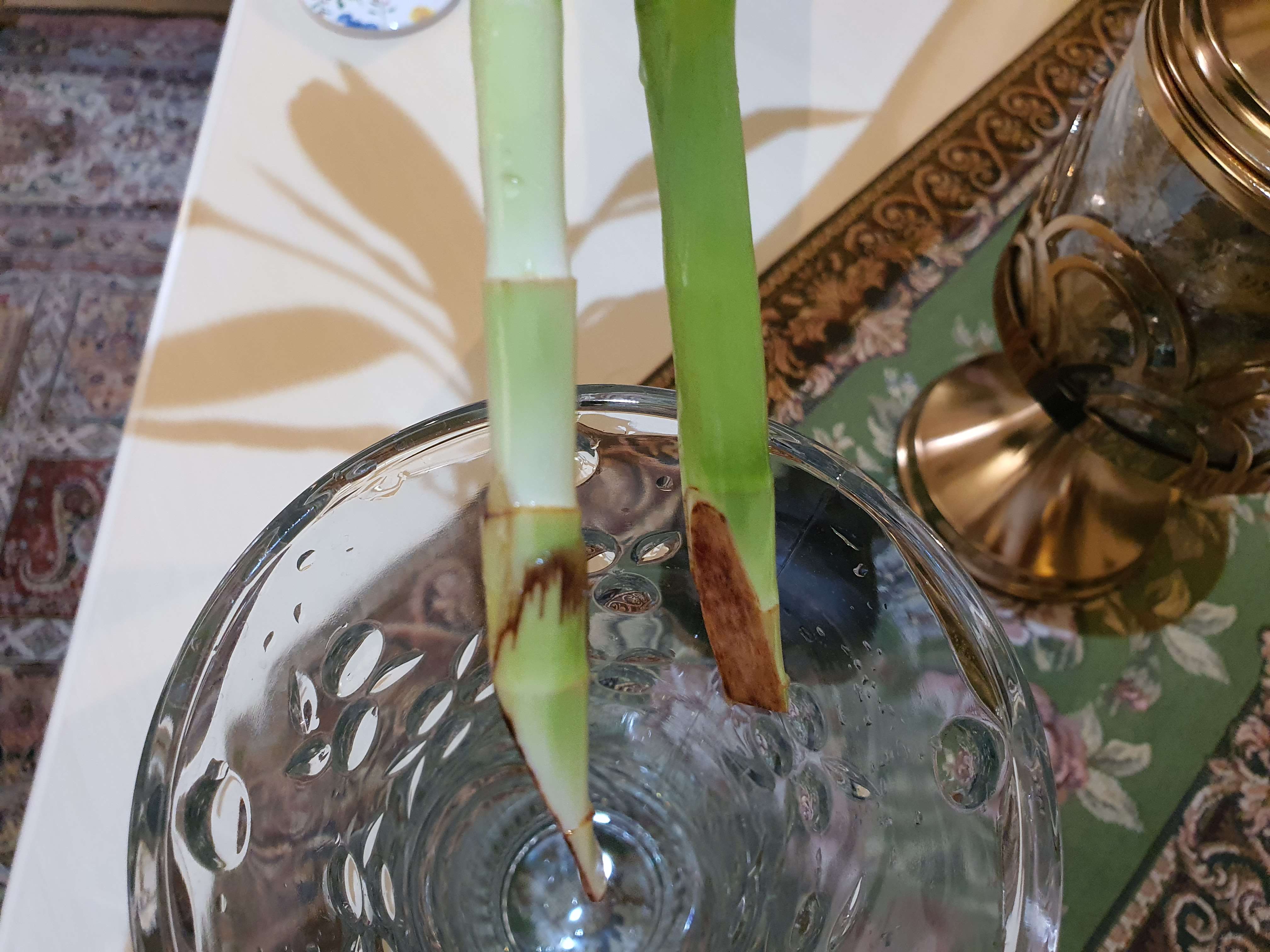 خیر، کود نمیدم اصلا... آبش را هم چند بار عوض کردم، ریشه هاش را با محلول قارچ کش شستشو دادم اما این قضیه متوقف نشد..