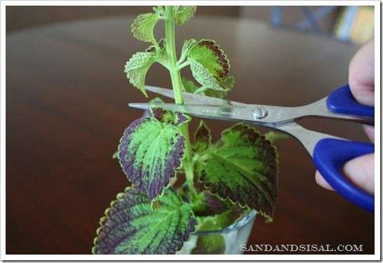 ساقه را از هرجا که دوست دارید گیاه پرپشت شود ، طبق تصویر قطع کنید و قلمه را در آب یا خاک ریشه دار کنید