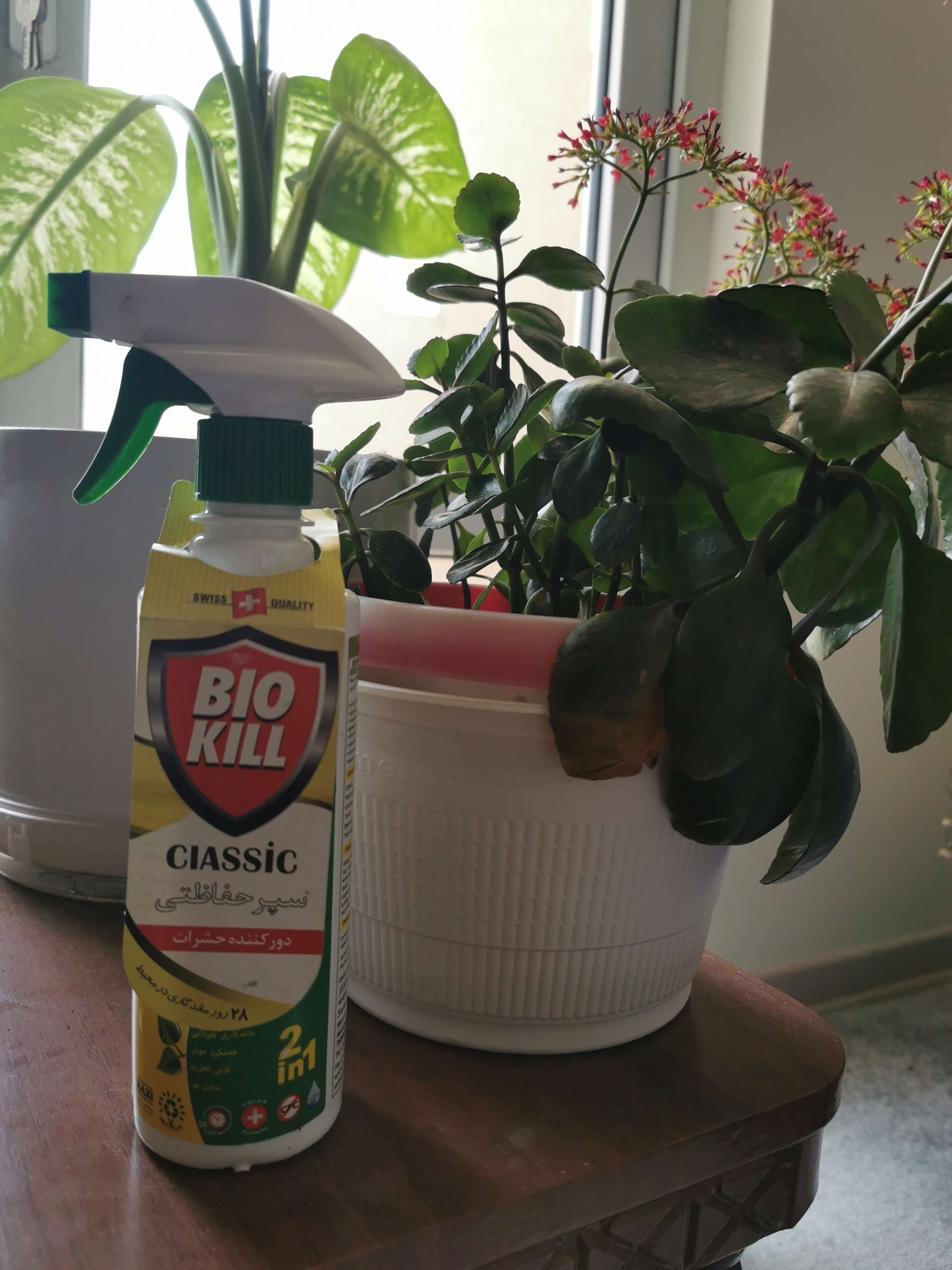 سم Bio Kill هست پشتش هم نوشته ماده موثرش پرمترین هست آبیاری رو هم وقتی که سطح خاک خشک شد، با اسپری آب انجام میدم (آب از زیرگلدونی جاری نمیشه) تقریبا هفته ای دوبار از اب لوله (نه اب تصفیه آشامیدنی) غبارپاشی هم نمیدونستم لازمه براش یا نه، انجام ندادم