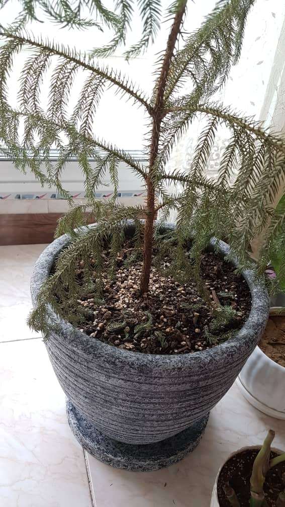 تهویه منظورم بود ... ببخشید ساقه ی کاج نمیدونم دقیقا از کجاش باید ببرم . میشه راهنماییم کنید ؟ ولی اخرین طبقه از بالا اون قسمت کوچیکش هنوز خشک نشده کامل و برگاش نرمه . تو عکس مشخص میکنم کجا. یه سوال دیگه اینکه توی اینترنت سرچ میکردم نوشته بود کاج احتیاج به کود آهن داره. ولی من کود اهن ندادم بهش تاحالا. کود سه بیست رو هم اخرین بار بهمن ماه بهش دادم.