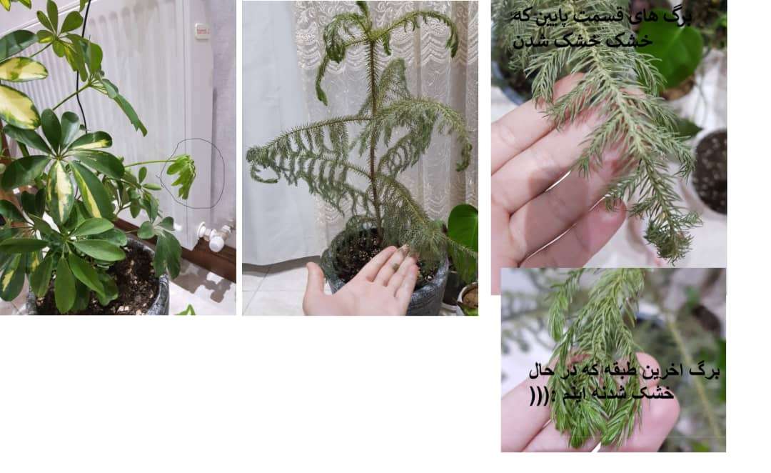 سلام کاج مطبق من بعد از عید از پایین شروع به خشک شدن کرد. من فکر کردم مشکل حادی نیست و هر روز براش رطوبت ساز روشن کردم در حد چند ساعت. جاشم تغییر دادم اوردم نزدیک پنجره. البته افتاب نمیخوره. از شهریور پارسال دارمش و کود ماهی یبار سه بیست فقط میدادم بهش. الان کم کم بقیه شاخه ها هم خشک شدن و به بالاترین شاخه رسیده و جوری شده که دست میزنم به برگا یه جوری بیجون و سفت شدن و مثل برگ خشک پاییز با دست زدن بهشئن می افتن زمین. میخام ببینم درمانی براش هست ؟؟؟ خاک گلدانم من از شهریور عوض نکردم. فقط عید یکم خاک به اول گلدون اضافه کردم چون یکم سطح خاک کم شده بود . یه شفلرا هم دارم تازگی خریدم. اول اوکی بود الان بعد سه هفته دو تا برگاش که جوون هم هستن حالت پژمردگی پیدا کردن
