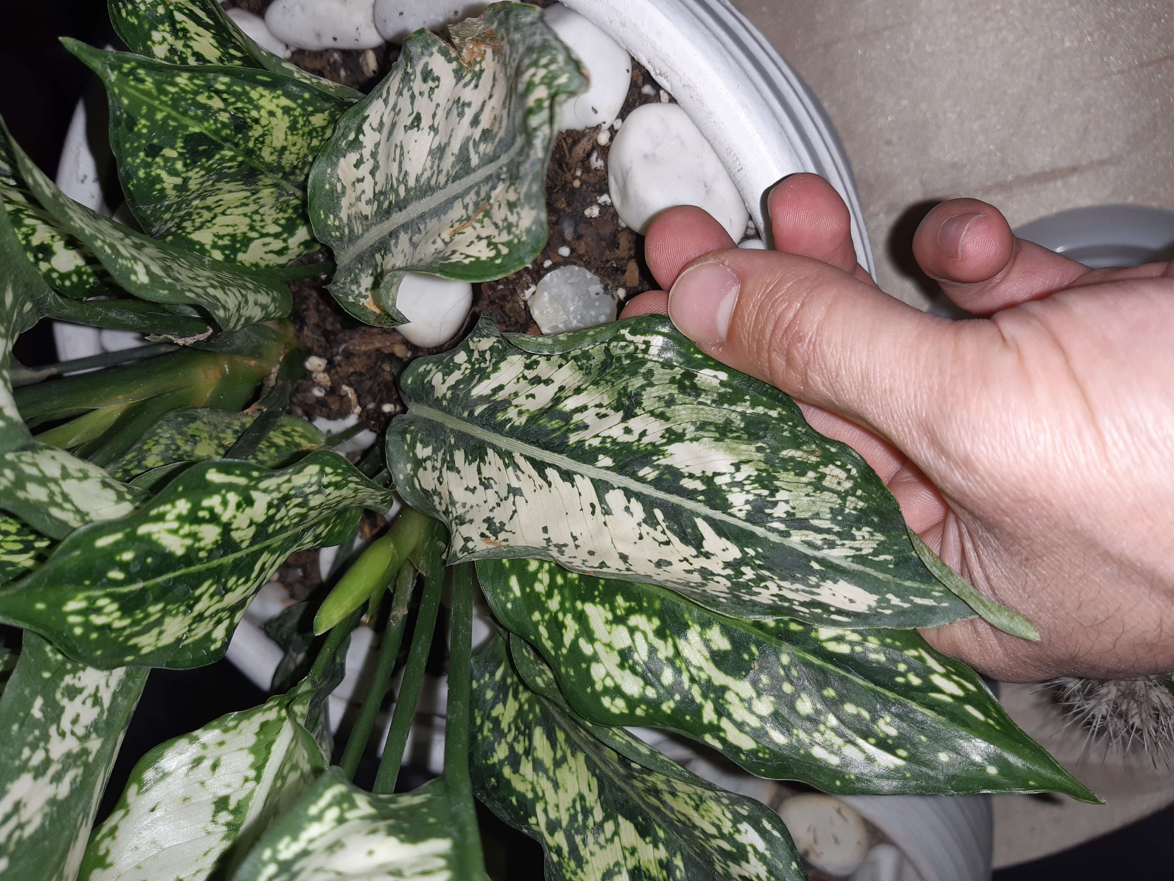 سلام چند روزه یه آگلونما برفی گرفتم گلدانش هم عوض کردم ولی احساس میکنم برگایی پایین گیاه چنتاشون لوله شدن و رو یکی از برگ ها لک افتاده علتش چی میتونه باشه ؟