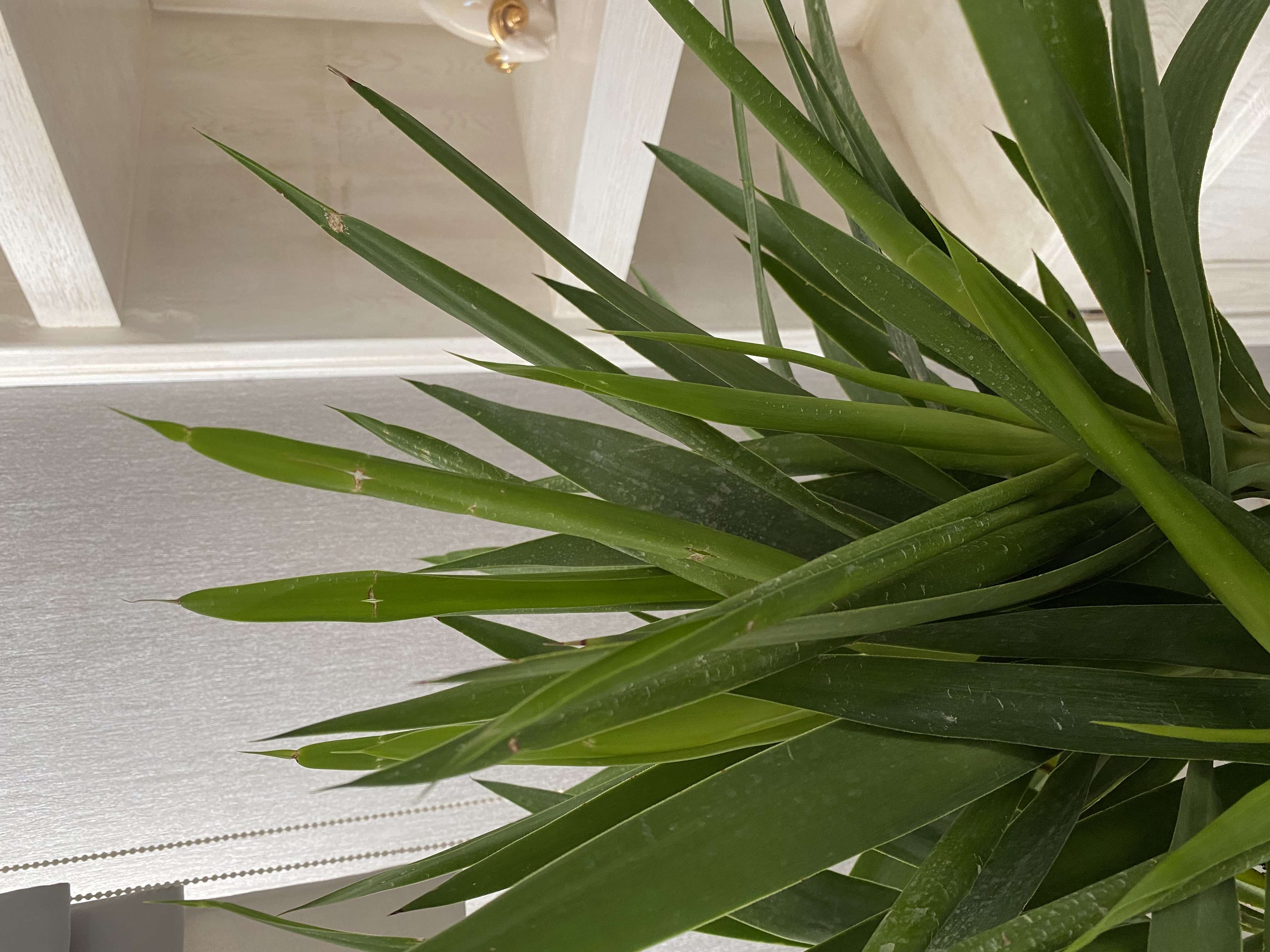 با سلام و خسته نباشید درختچه یوکا تنه بزرگ خریداری کردم از روزی که وارد خانه شده لمه های قهوه ای روی برگ شروع شده و چند تا برگهاش سوراخ شده اند و برگها دائما در حال لوله شدن به سمت بیرون هستند ۲دوره ۳هفته ای قارچکش ۲ مدل و یک دوره ۳هفته ای آفت کش استفاده کردم ولی با این وجود روز به روز حال گیاه در حال بدتر شدن هست آبیاری هفته ای یکبار انجام میدهم و تهویه و نور گیاه مناسب است لطفا راهنمایی کنید گیاهم داره از بین میره
