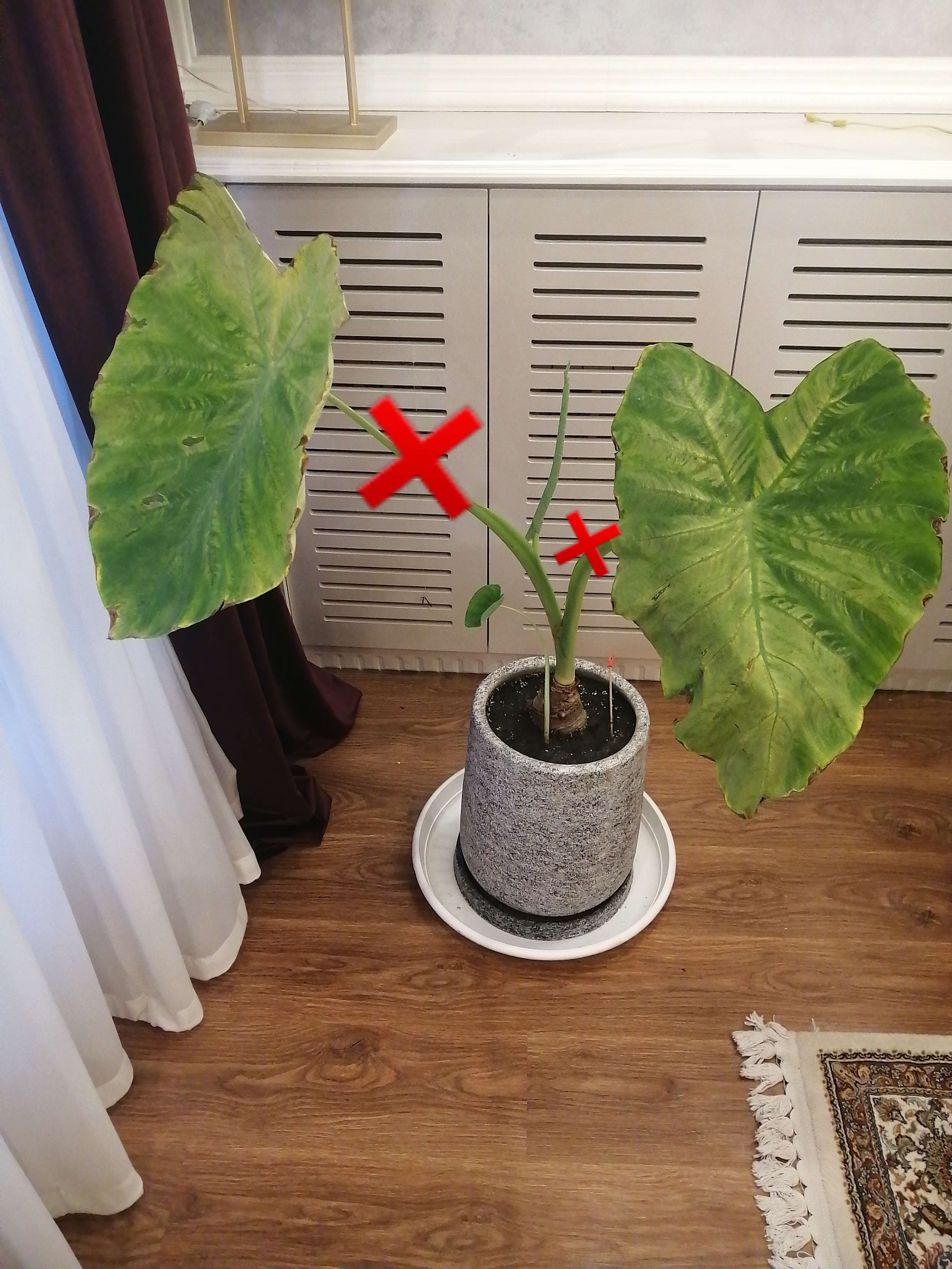 برگ رو دقیقا از جایی که به ساقه وصل شده قطع کنم؟ اون خاکی که یک بند انگشت فقط بالا ریختم رو دوباره بریزم؟ (خاک سیاهه، اسمش یادم نیست)
