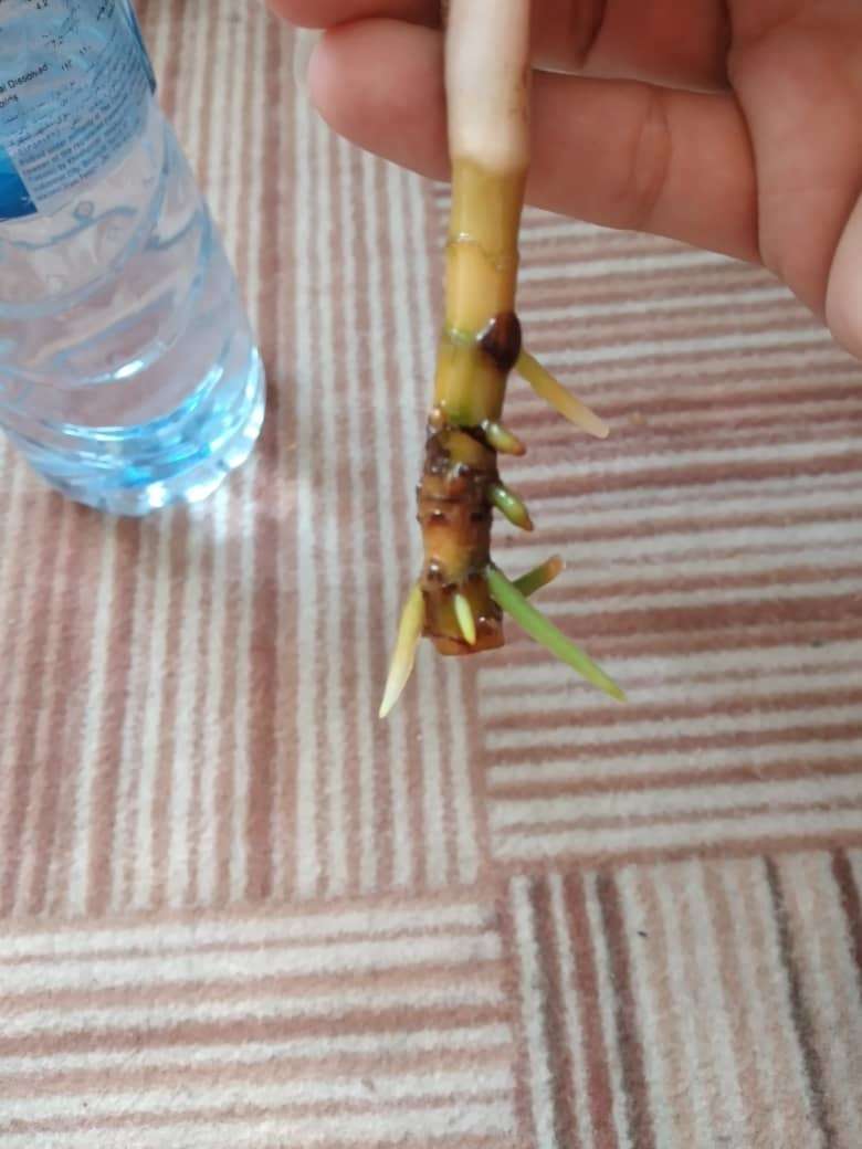 پس اگر سفت هست بزارید یکم دیگه ریشه بزرگ بشه حدود 4 تا 5 سانت بشه بهتره که داخل خاک بگیره بعد از کاشت در خاک هم حتما دقت کنید اولین ابیاری با قارچکش و ابیاری دوم با اسید هیومیک باشه و قلمه رو در یک ظرف دهانه تنگ بزارید که انتهای قلمه با کف بطری تماس نداشته باشه و دو تکه ذغال در اب بیاندازید