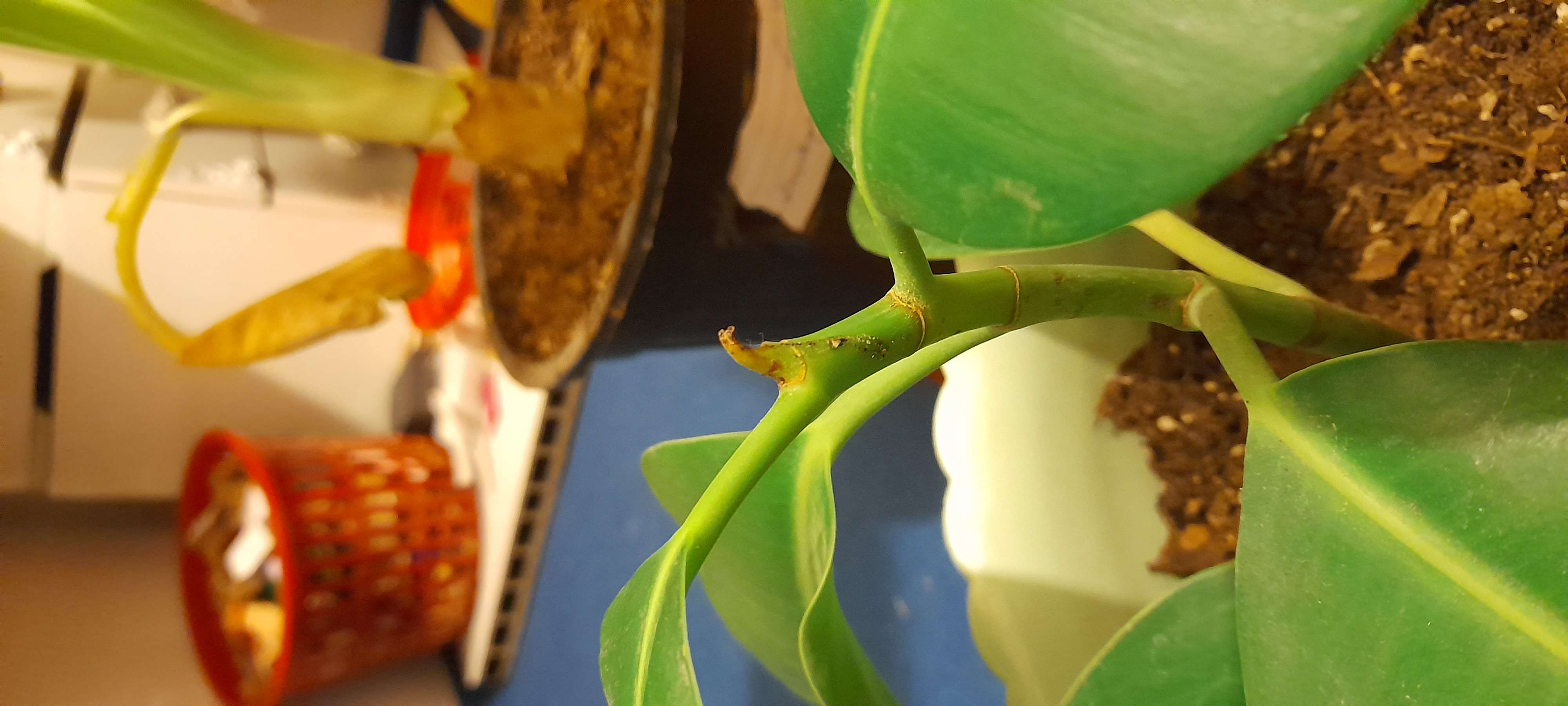 لطفا پشت برگ ها رو با دقت بررسی کنید ببینید برجستگی خاص یا دونه سیاه نمیبینید؟ و گیاهی کنار فیکوس نیست که علایم الودگی و بیحالی داشته باشه؟