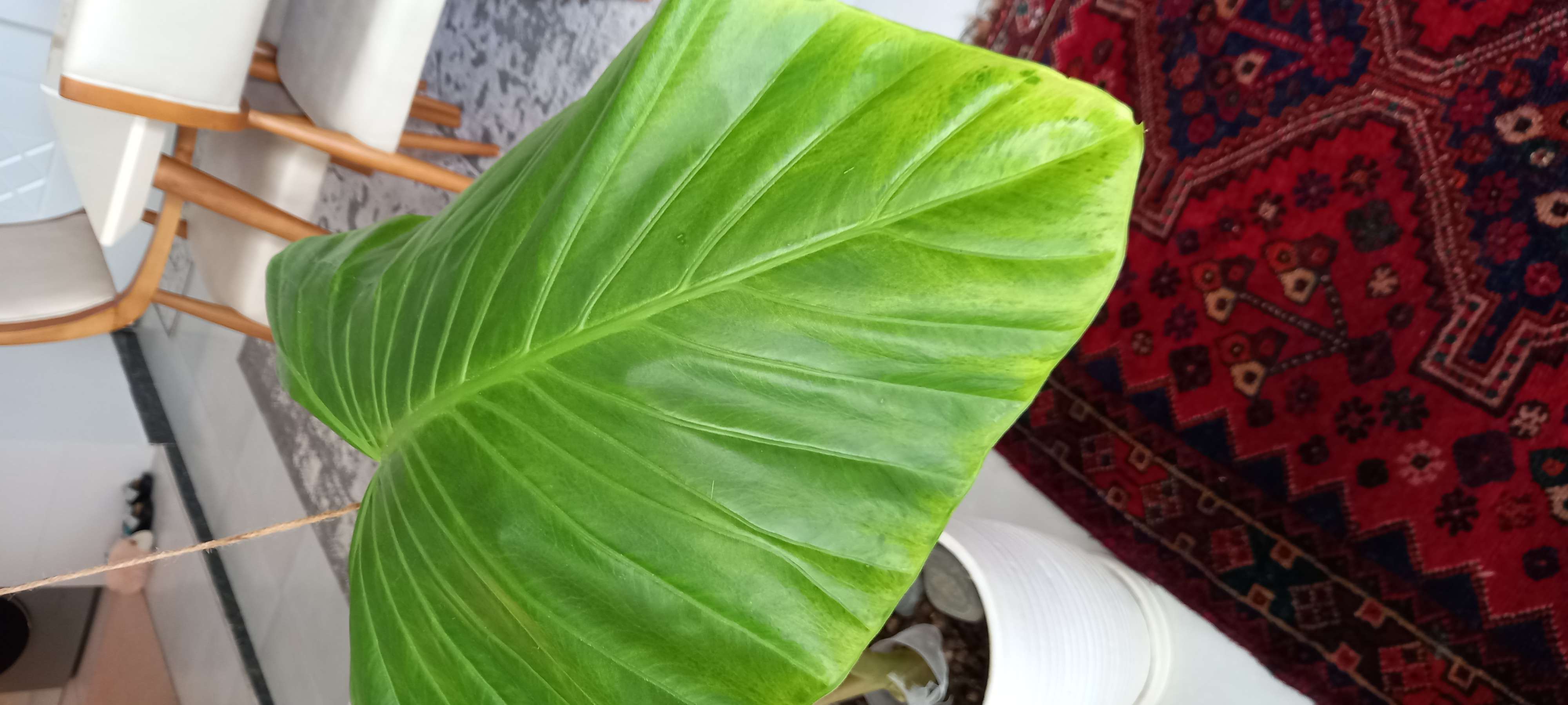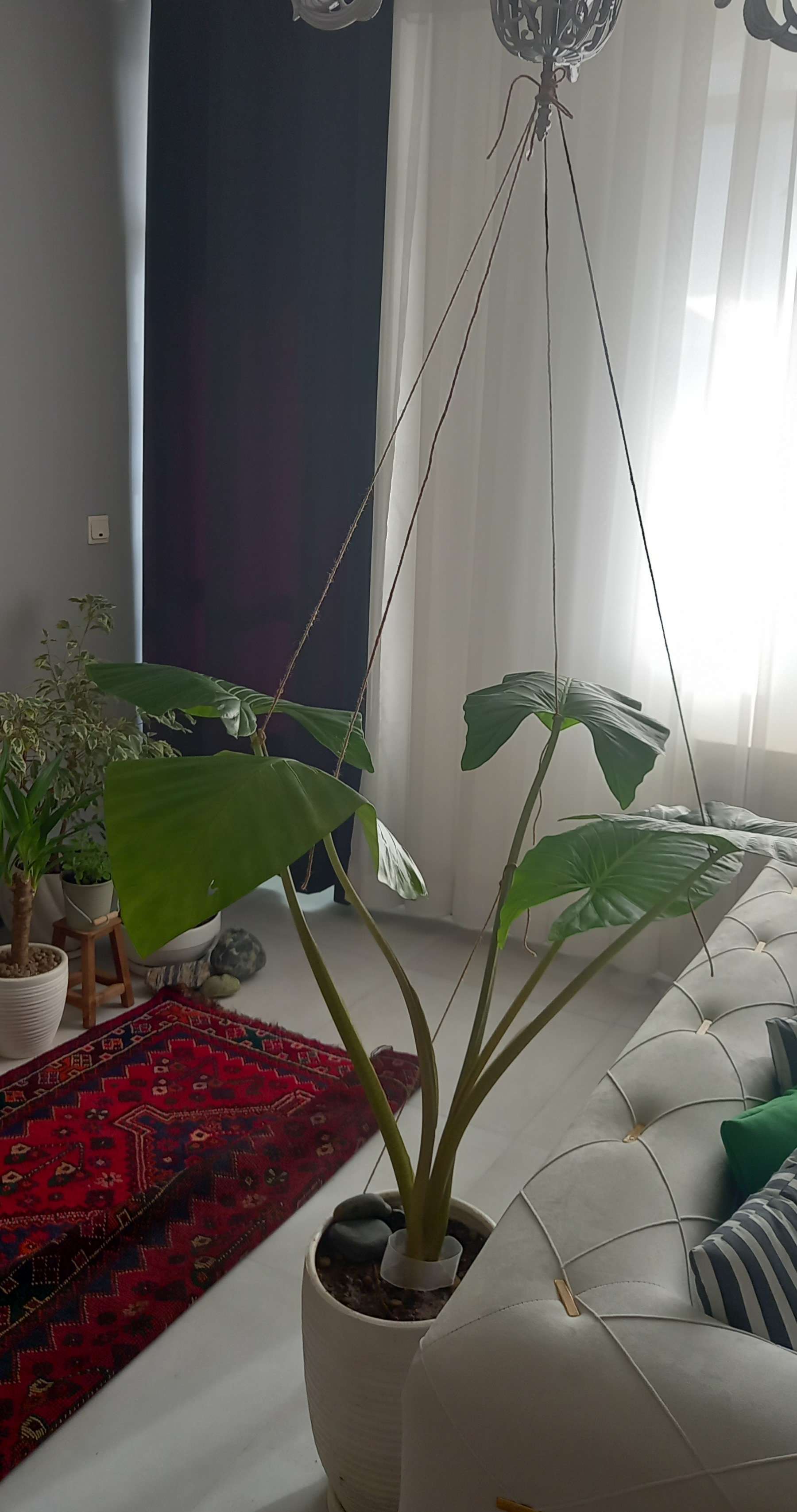 یکم محلول قارچ کش ریختم پای گلدون اینم عکسش که بخاطر افتادگی برگهارو بستیم به لوستر تا درست شه