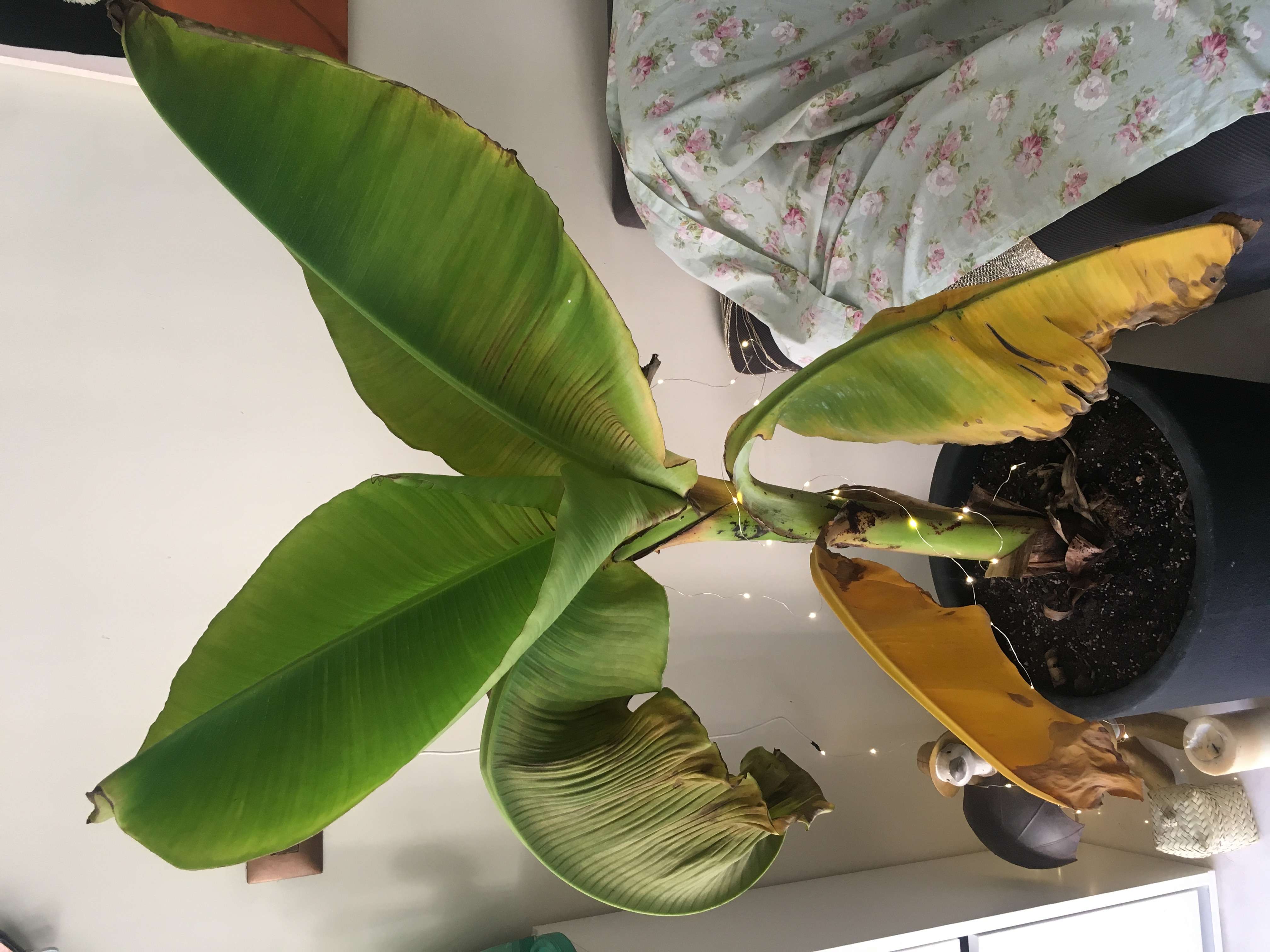 سلام درختچه موز من يهو كلا پلاسيد،نزديك پنجره جنوبي هستش نورش خوبه،نميدونم مشكل چيه ولي همه برگهاش يكهو زرد شد حتي برگ جديدش هم دورش قهوه اي شده چند روز هم پشه از خاكش ميومد كه سم پاشيدم و ظاهرا اوكي شده بود