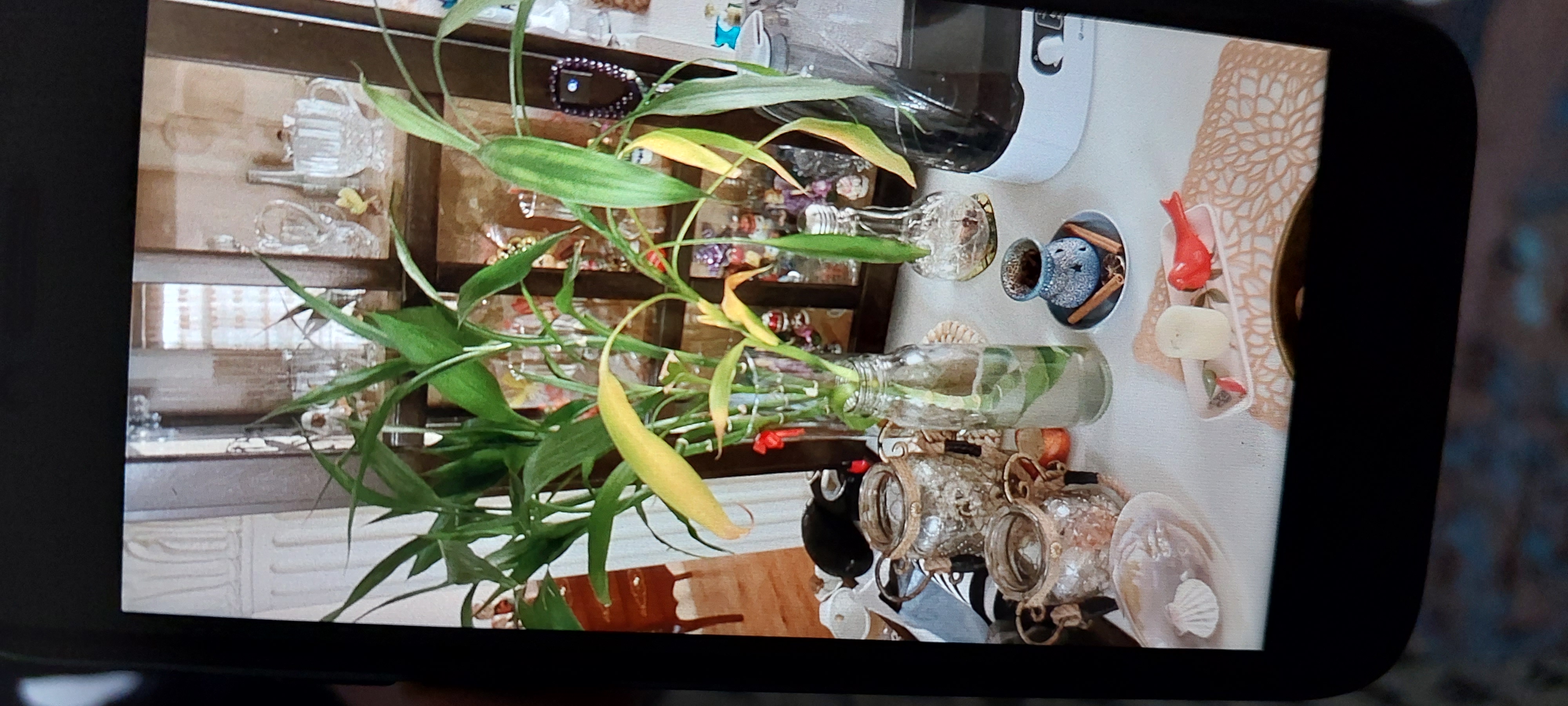 سلام وقت بخیر . گرما ، لزج شدن آب و استفاده ی بی رویه از کود میتواند از عوامل زرد شدن برگها باشد . اگر ساقه و ریشه لزج شده باید گلدان را در محیط خنکتر نگه دارید . اگر از قطره استفاده میکنید فعلا مدتی از اینکار خوددا ی کنید . آب گلدان را زود به زود تعویض کنید و گلدان را در محیط خنکتری قرار دهید . ساقه و ریشه اگر لیز و لزج شده آنرا بشویید تا این حالت از بین برود . شبشه ای که استفاده کردید دهانه اش برای این تعداد بامبو کوچک است. از ظرفی با سایز دهنه ی بیشتر استفاده کنید